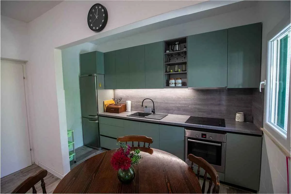 Mieszkanie wakacyjne znajduje się w apartamentowcu i jest urządzone w typowym stylu regionalnym oraz funkcjonalnie. Działka położona jest na osiedlu mieszkaniowym, na obrzeżach miejscowości. Również ze względu na spokojne i słoneczne położenie dom cieszy się popularnością. Do wspólnego użytku dostępne są: prysznic ogrodowy, możliwość grillowania, taras i meble ogrodowe.