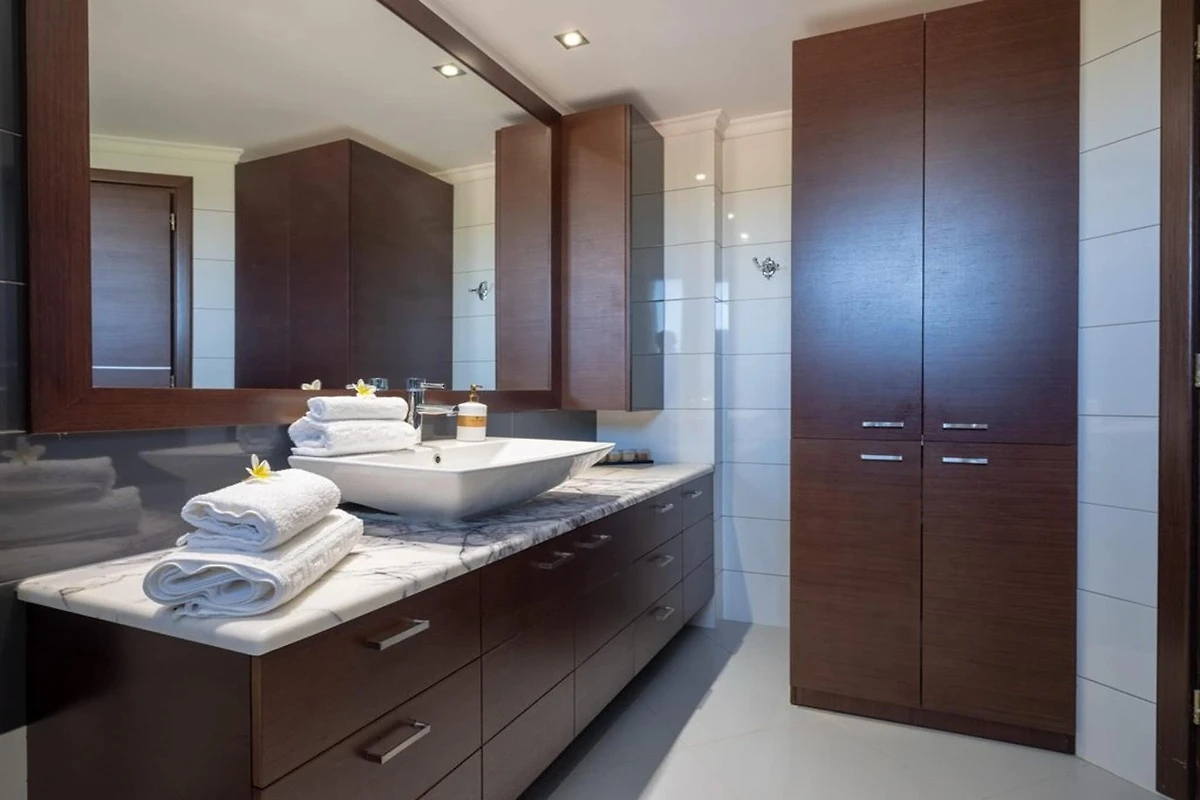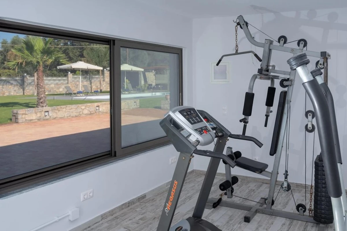 Ta stylowa, 5-pokojowa willa, położona zaledwie 10 km od Heraklionu, oferuje luksusowy wypoczynek dla maksymalnie 9 osób. Rozciągająca się na trzech poziomach, willa oferuje jasne, klimatyzowane przestrzenie, w pełni wyposażoną kuchnię, przytulny salon i gustownie urządzone sypialnie. Do dyspozycji Gości jest również prywatna siłownia.
