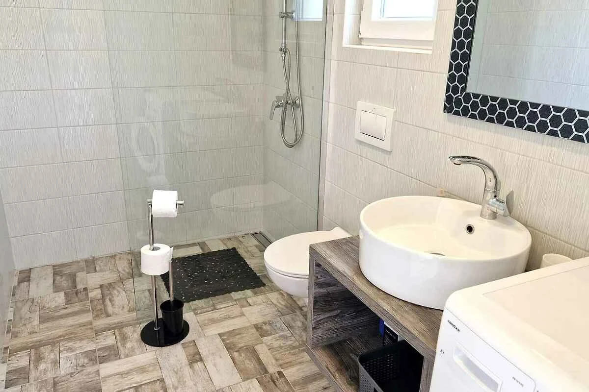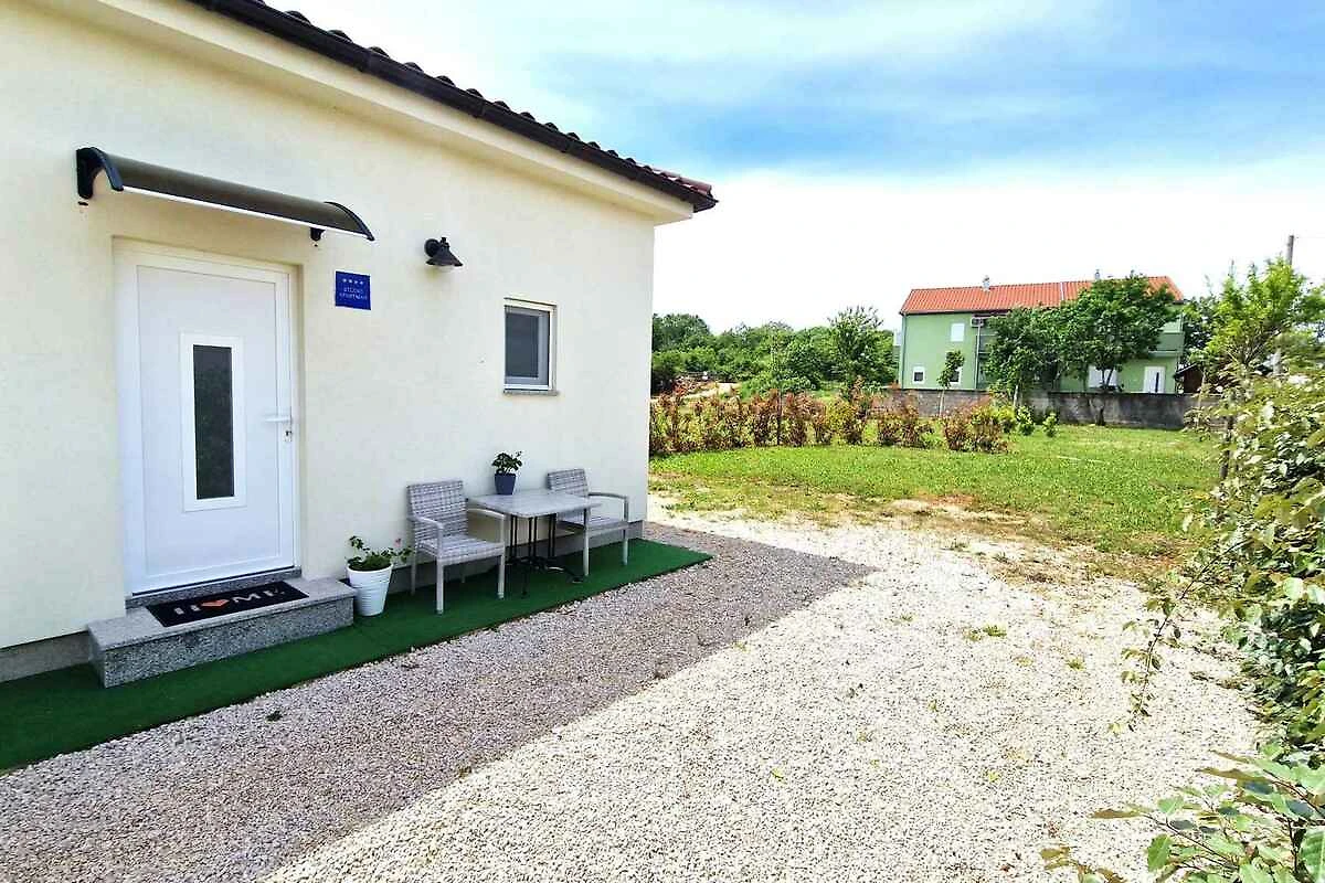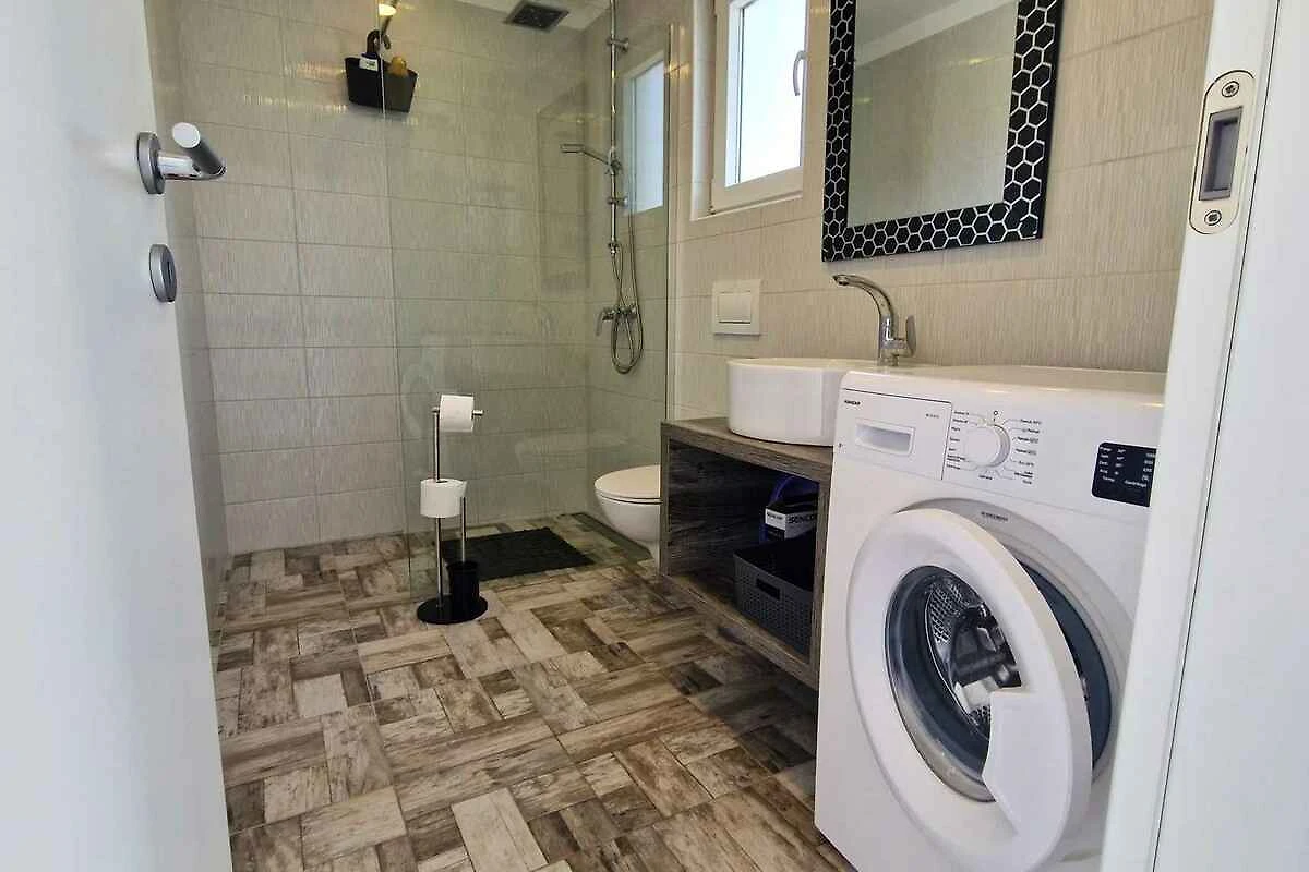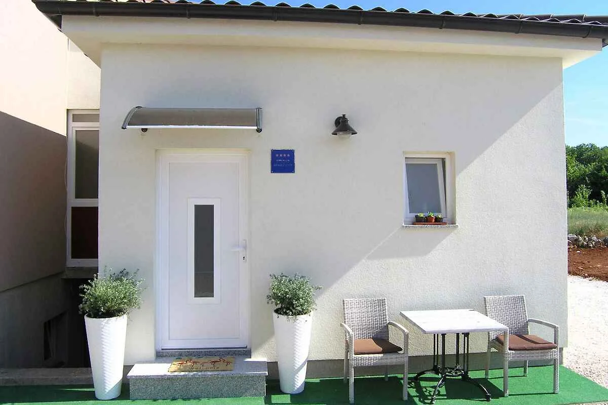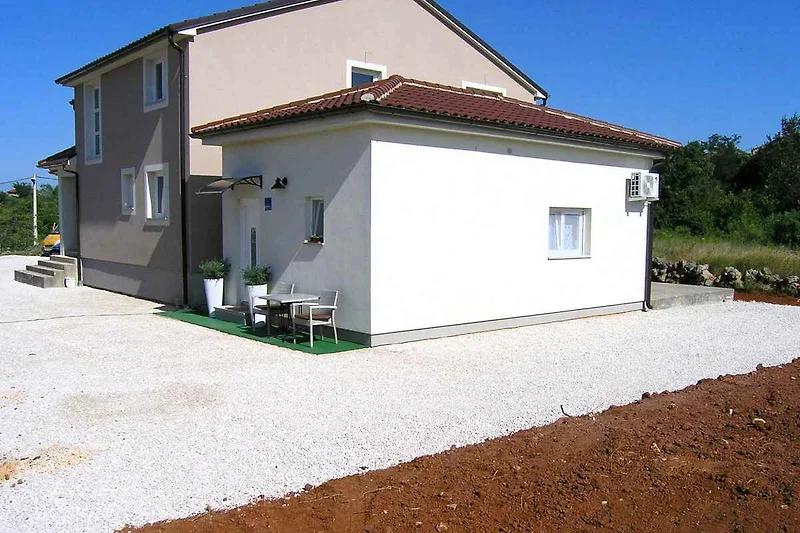Krk. Mieszkanie wakacyjne znajduje się na zamkniętej posesji, otoczonej murem. Zabytki Krk (otok Krk) można zobaczyć w centrum, 5000 m dalej. Dojazd drogą boczną (gruz lub żwir). Parking na posesji.