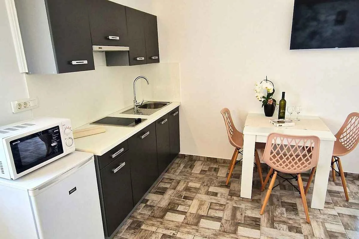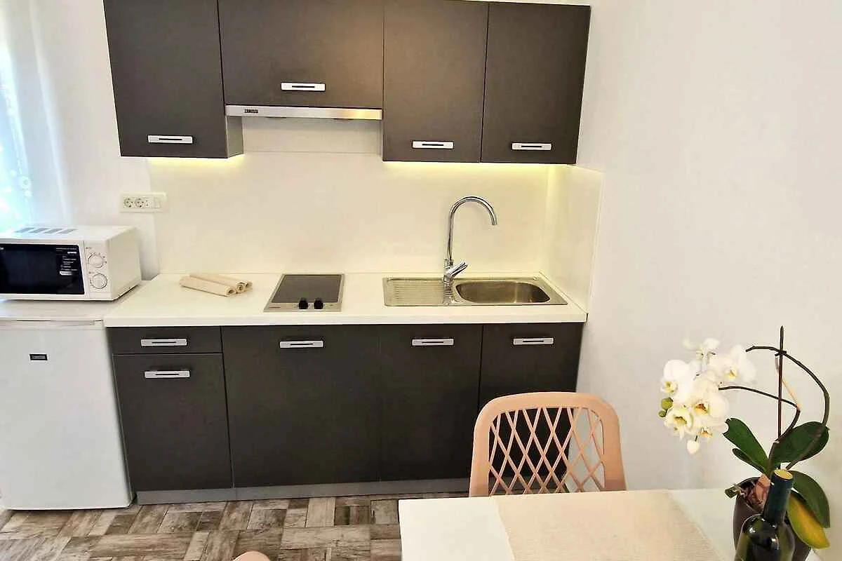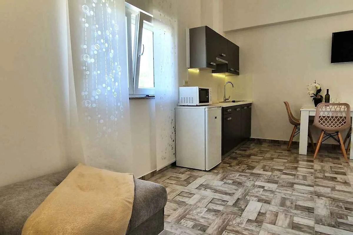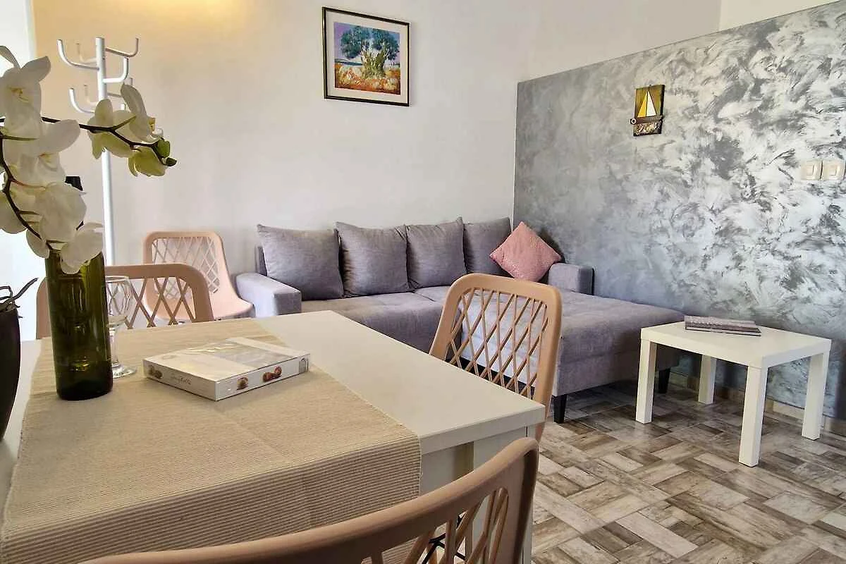 Krk. Mieszkanie wakacyjne znajduje się na zamkniętej posesji, otoczonej murem. Zabytki Krk (otok Krk) można zobaczyć w centrum, 5000 m dalej. Dojazd drogą boczną (gruz lub żwir). Parking na posesji.