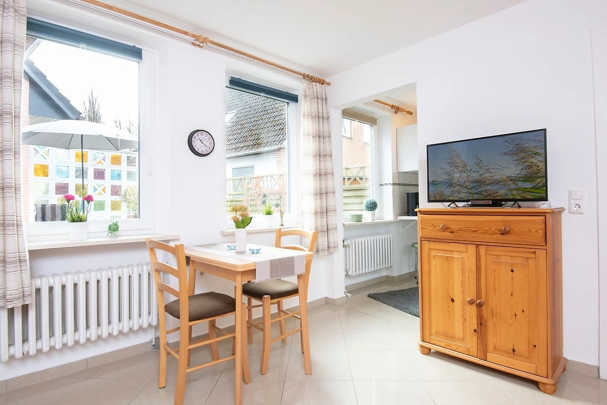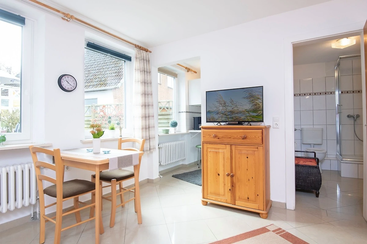 schöne Einzimmer Ferienwohnung, zweckmässig eingerichtet. Es fehlte an nichts. Grandios die Lage, über die Strasse - am Strand. Toll auch der kleine eingezäunte Garten. Allerdings müssten mal neue Auflagen für die Gartenstühle angeschafft werden. Wlan 1 a, komme gerne wieder.