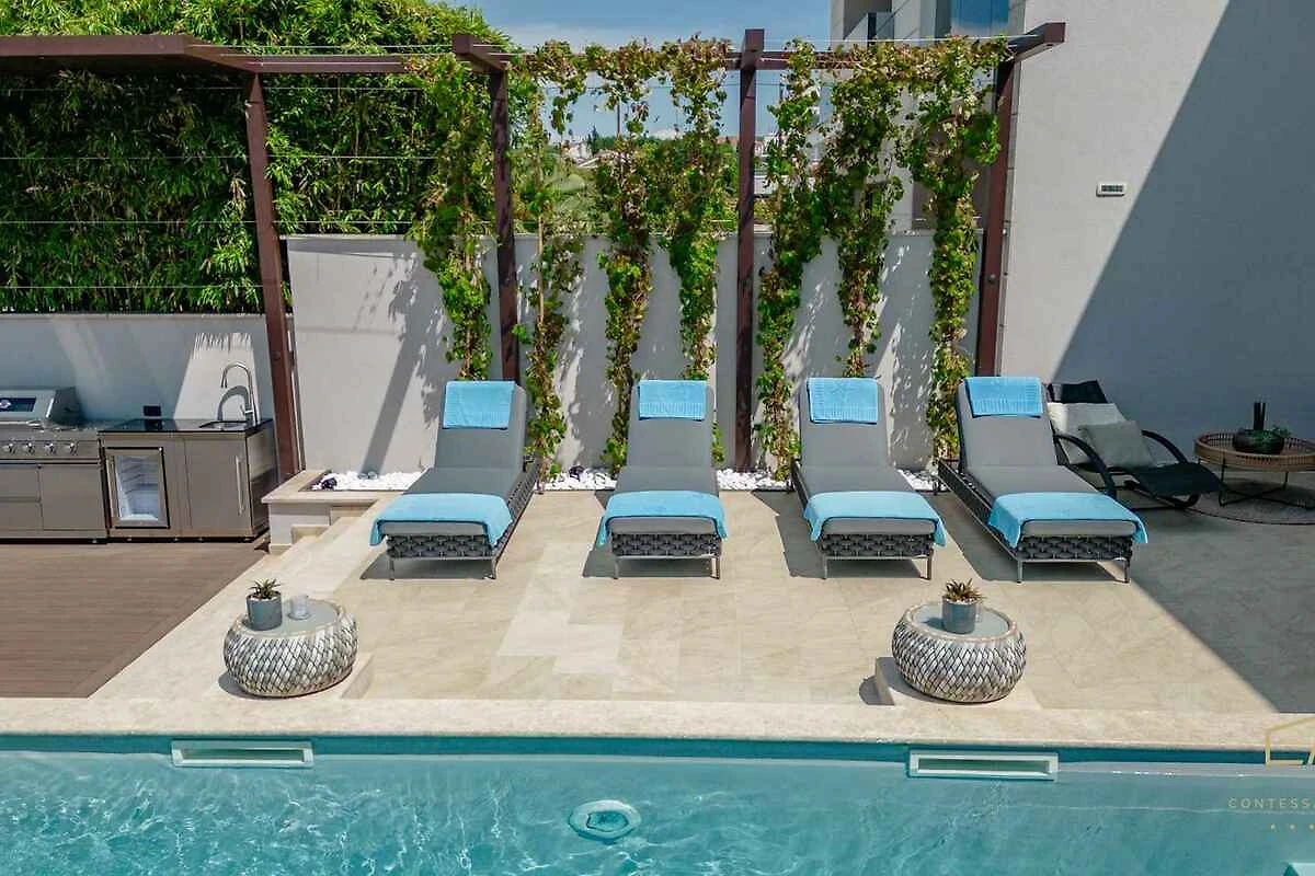 Wolnostojąca willa jest urządzona nowocześnie i luksusowo. Działka znajduje się w centrum miejscowości. Również ze względu na słoneczne położenie dom cieszy się popularnością. Do dyspozycji są: parasol przeciwsłoneczny, leżak, możliwość grillowania, taras i meble ogrodowe.