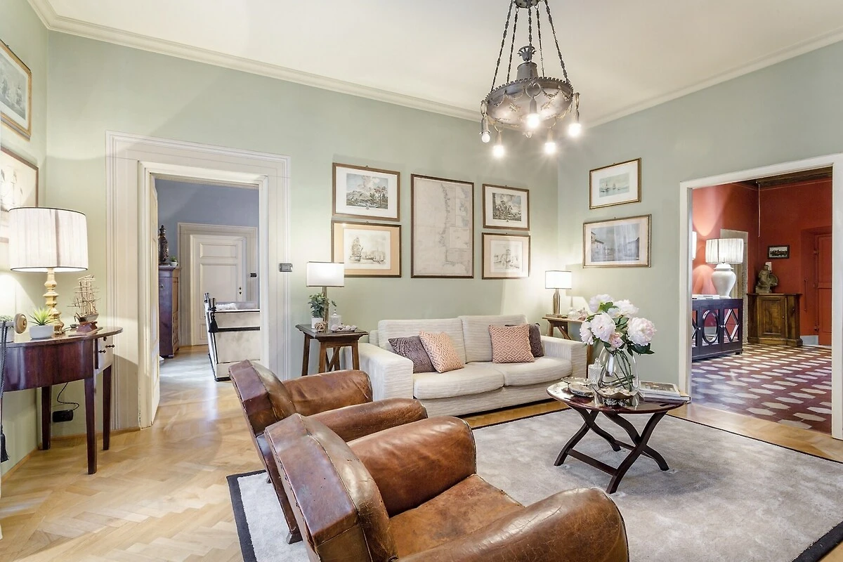 Apartament harmonijnie łączy elegancję swojego dziedzictwa architektonicznego z nowoczesnymi udogodnieniami. Takie elementy jak freskowane sufity i marmurowy kominek przypominają o bogatej przeszłości miasta, a nowoczesne udogodnienia, takie jak telewizja kablowa, Wi-Fi i klimatyzacja, zapewniają komfortowy pobyt. Pokój do nauki oferuje idealną przestrzeń do pracy zdalnej, a dobrze wyposażona kuchnia ze zmywarką do naczyń pozwala na bezstresowe przygotowywanie posiłków, dzięki czemu łatwo jest cieszyć się czasem spędzonym przy dużym stole jadalnym z przyjaciółmi i rodziną.
