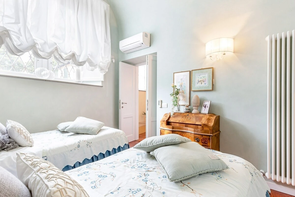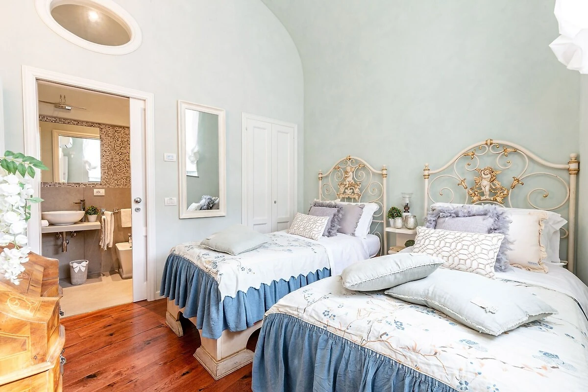 Położony w spokojnej okolicy, ten uroczy apartament kiedyś służył jako stajnia dla koni w historycznym pałacu należącym do Lorda Guinigi w XV wieku. Skrupulatnie odnowiony według najwyższych standardów, przestrzeń obejmuje dwie wygodne sypialnie i trzy łazienki, wszystkie wyposażone w duże wbudowane prysznice i wanny. Klimatyzacja i Wi-Fi zapewniają nowoczesne udogodnienia, a prywatny ogrodzony ogród — w pełni wyposażony w miejsca do siedzenia na zewnątrz — zapewnia przytulne schronienie dla gości. Do apartamentu można dostać się przez dwa wejścia, jedno z spokojnego ogrodu, a drugie z ulicy, co pozwala na obfitość naturalnego światła słonecznego wypełniającego pokoje przez cały dzień.