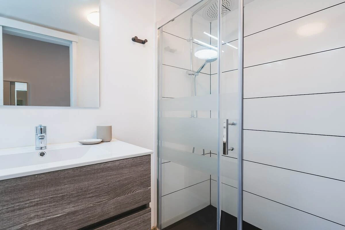 Wewnątrz znajdziesz przemyślanie wyposażoną kuchnię z płytą ceramiczną, lodówką, kuchenką mikrofalową, piekarnikiem, zamrażarką, zmywarką, ekspresem do kawy, czajnikiem, tosterem, sokowirówką i pełnym wyposażeniem kuchennym — idealną do przygotowywania posiłków w domu. Zakwaterowanie obejmuje Wi-Fi, pralkę, żelazko, suszarkę do włosów i 1 telewizor z radiem, aby zrelaksować się po dniu zwiedzania.
