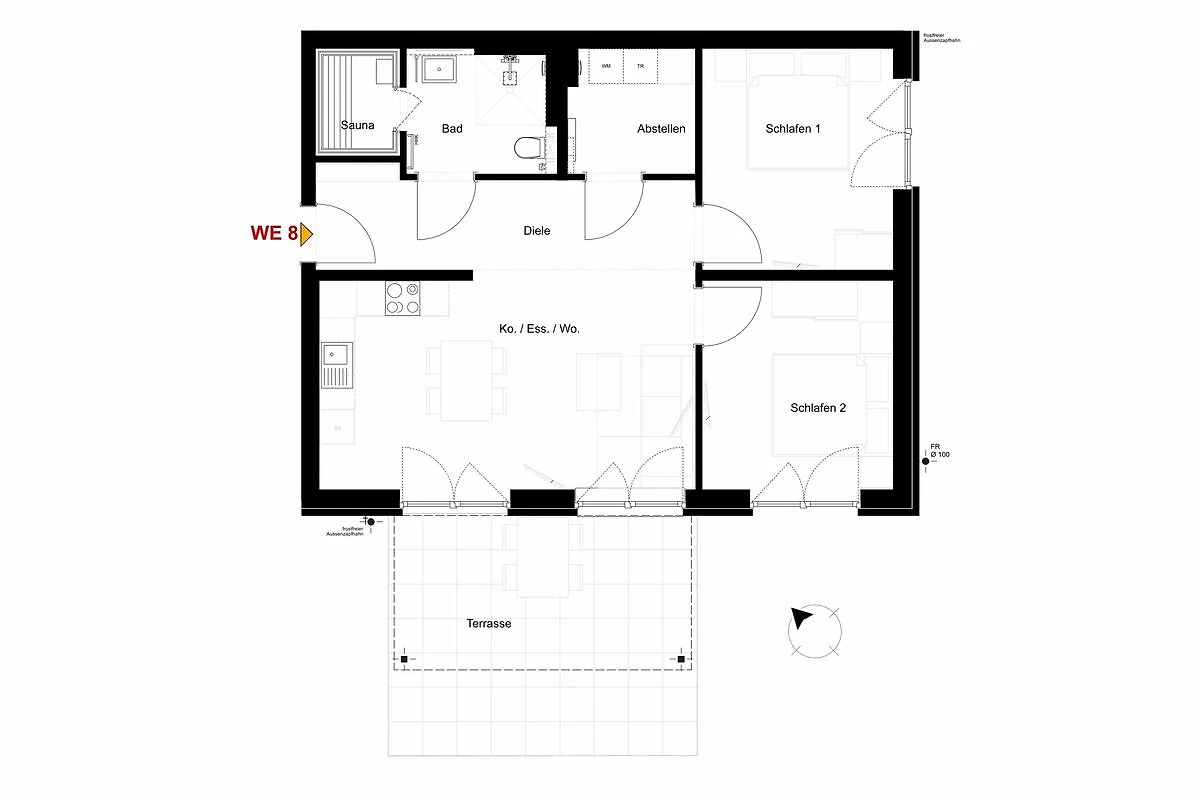 Was viel zu selten bewertet wird: die Betten! möchte ich als erstes erwähnen, denn hier haben wir super geschlafen auf einer tollen Matratze. Rundum war es ruhig und dunkel. Also schon mal topp! Die Küche war das nächste Highlight. Es war wirklich alles da. Und dann natürlich die Sauna. Die Wohnung war sauber und gemütlich. Soweit die Highlights. Die Terrasse war nach Westen in Richtung Parkplatz ausgerichtet. Das hat uns weniger gefallen. War aber für uns kein Problem. Man sollte es aber wissen, falls man vorhat, dort ungestört im Sommer zu frühstücken. Und nicht vergessen: eigene Bettwäsche und Handtücher mitbringen! Das kostet sonst 15 Euro extra pro Person.