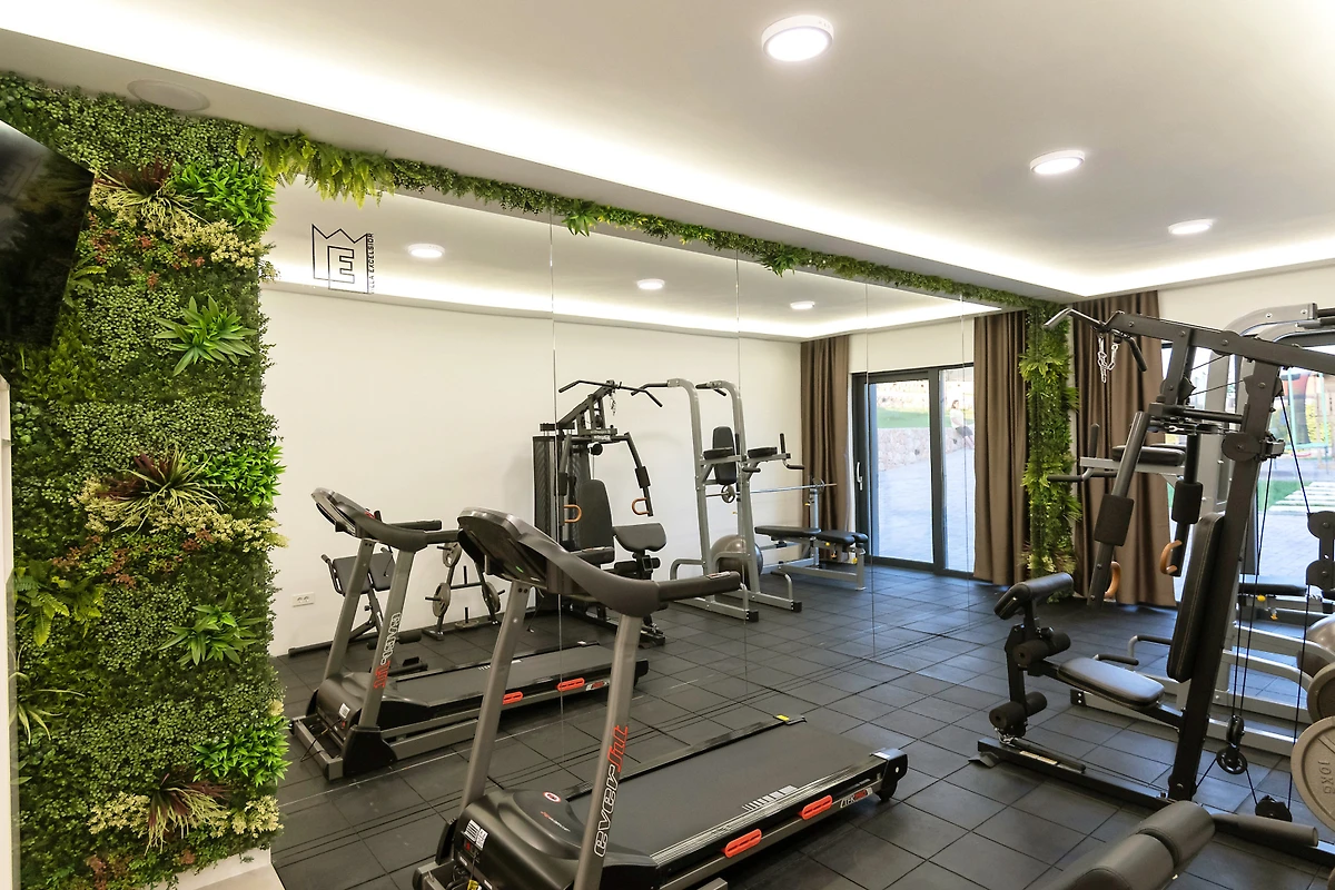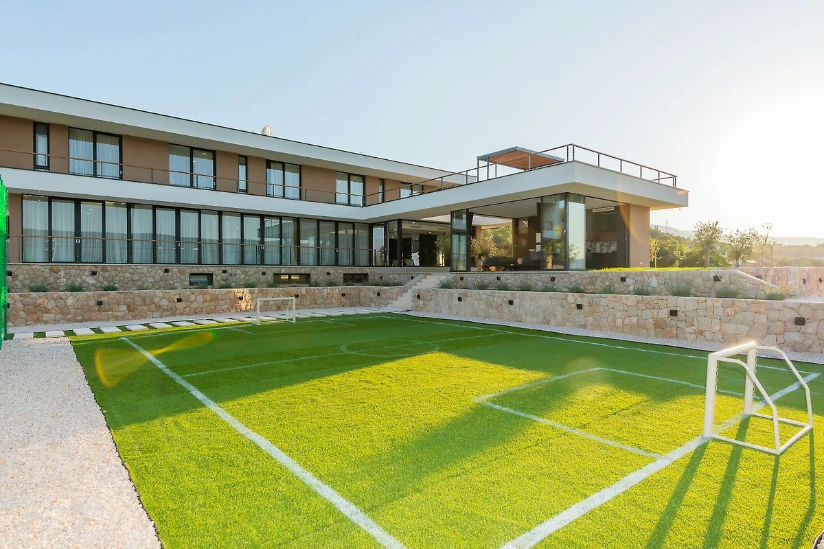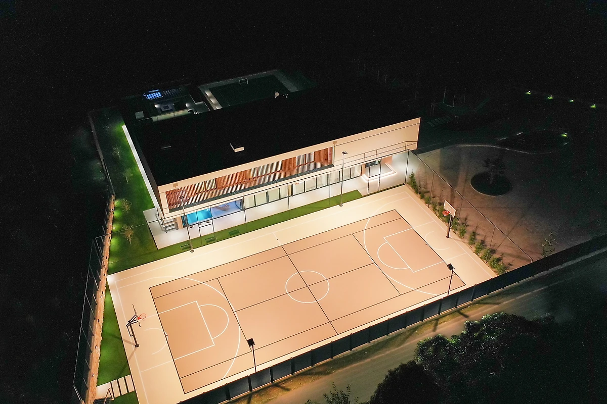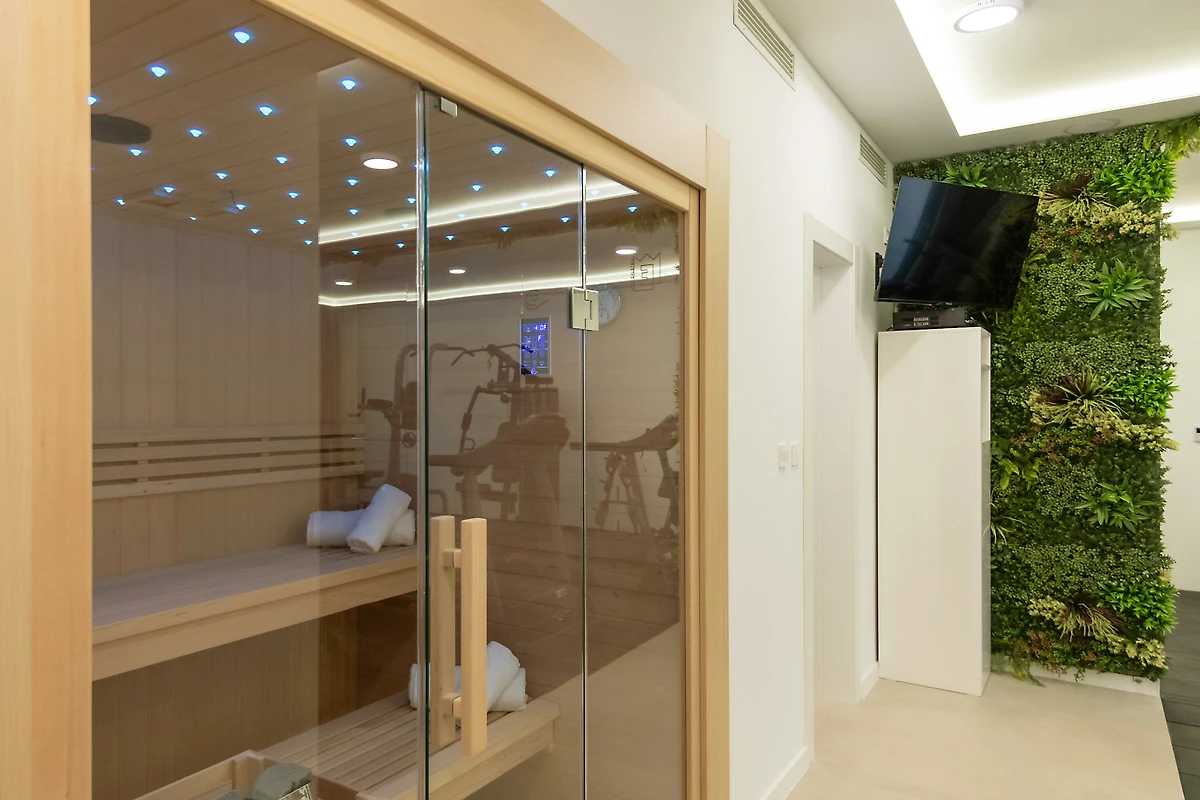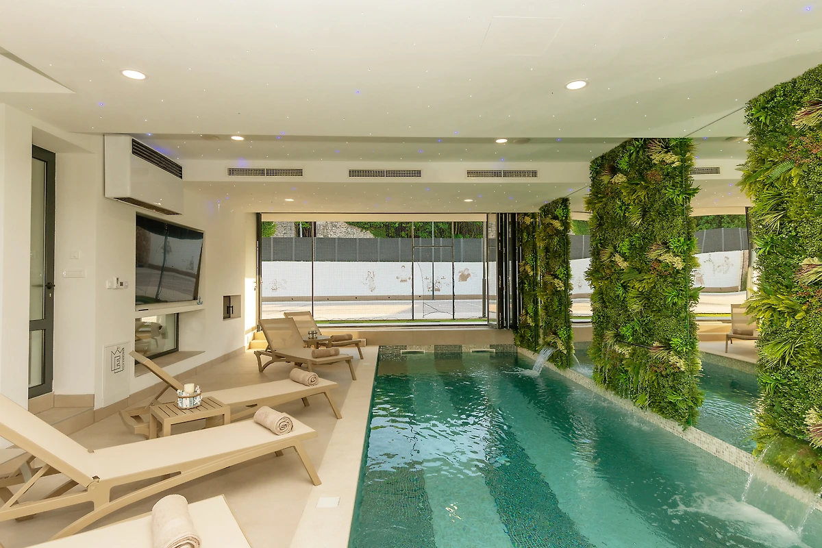 Zakwaterowanie jest wyposażone w następujące rzeczy ogród, meble ogrodowe, ogrodzona działka, taras, pralka, suszarka, grill, żelazko, internet (wifi), suszarka do włosów, kort tenisowy, siłownia, sauna, jacuzzi, pompa ciepła, klimatyzacja, basen klimatyzowany prywatny, parking na otwartej przestrzeni w przy budynku, Telewizor, antena satelitarna.