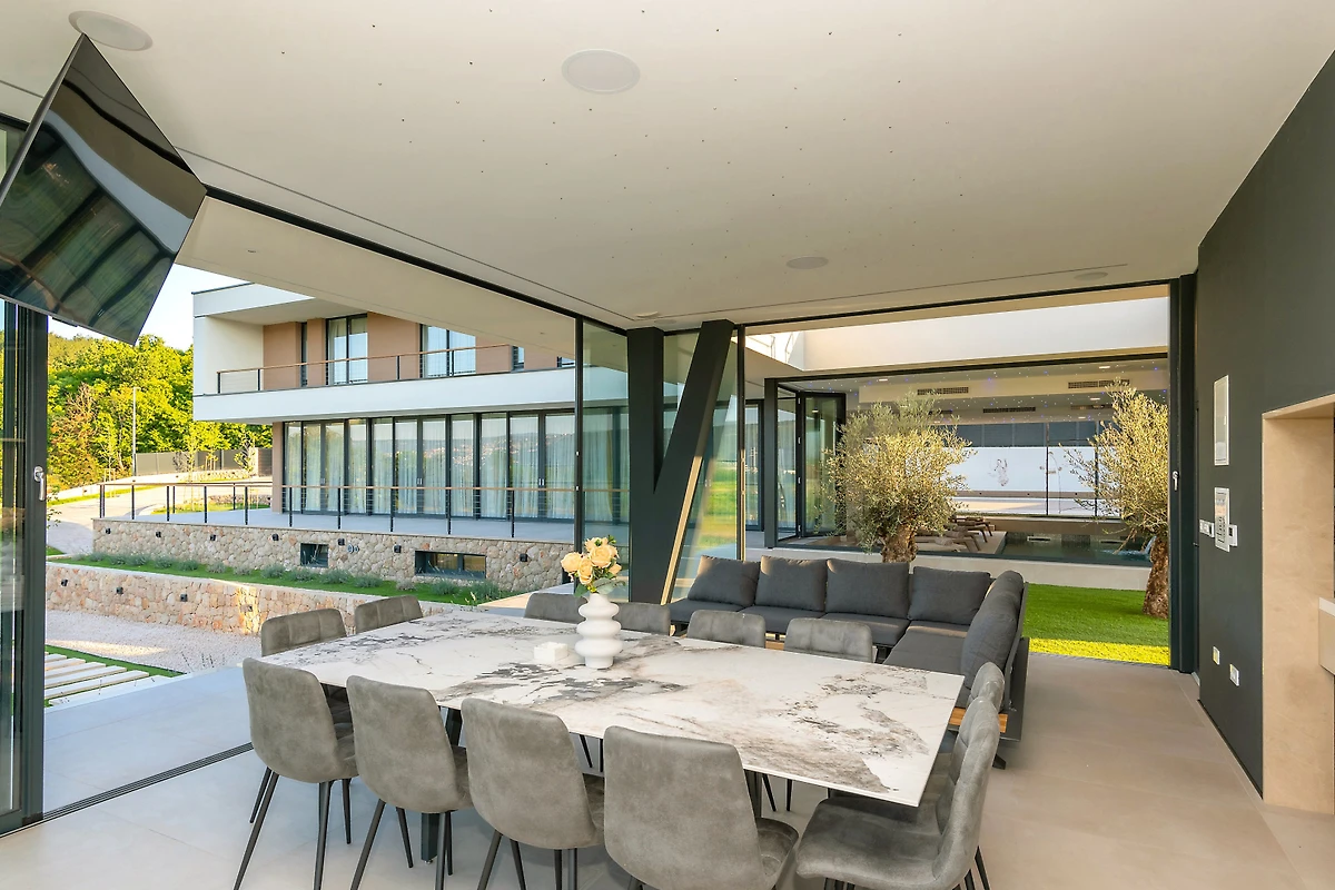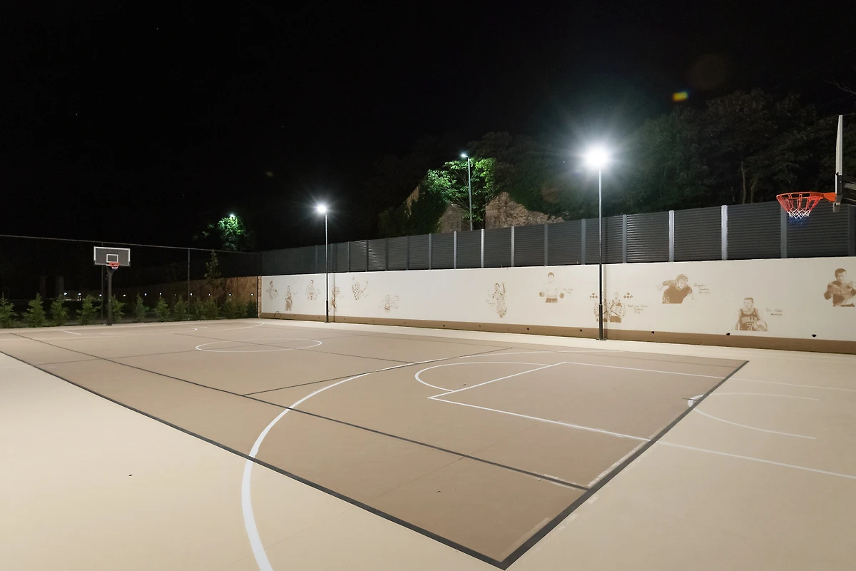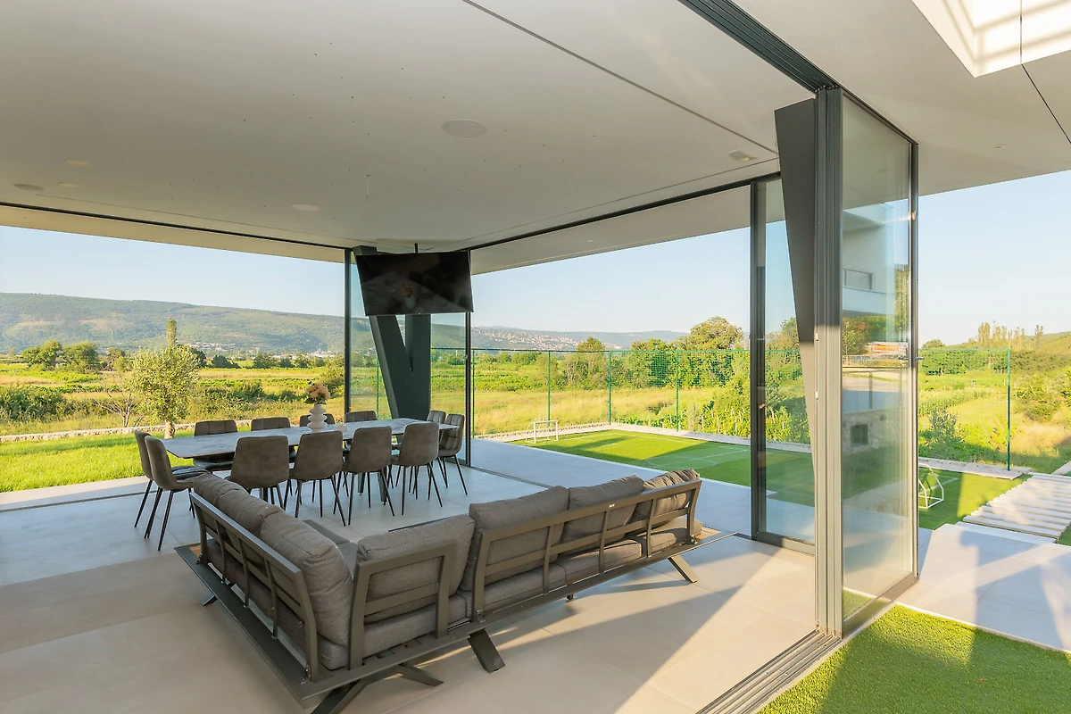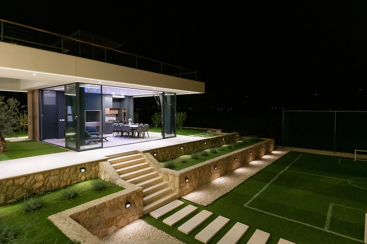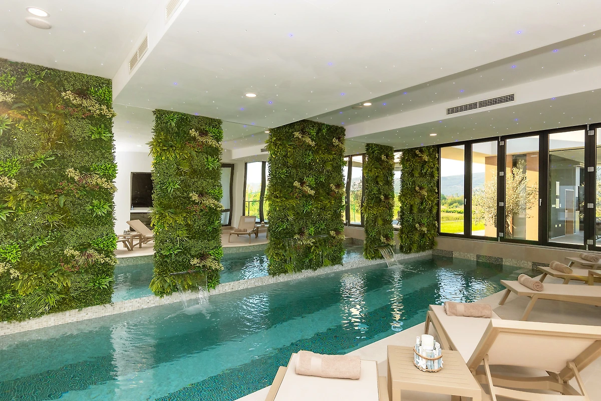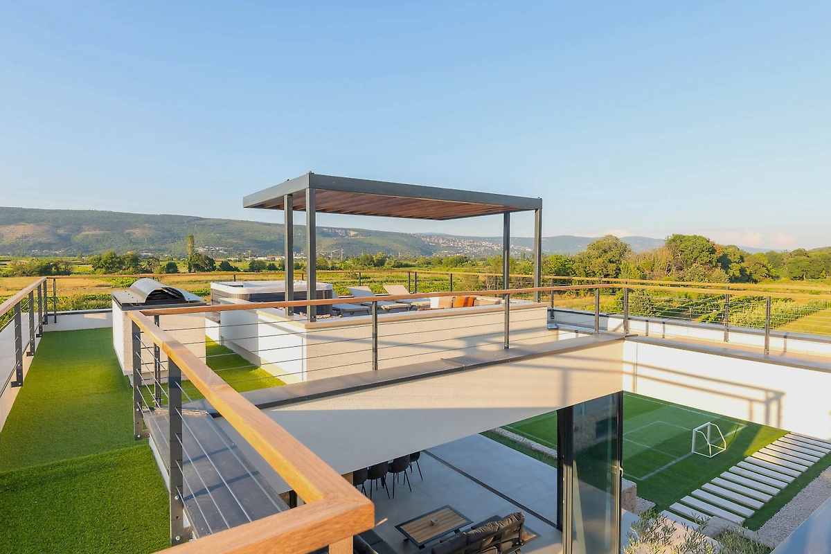 Zakwaterowanie jest wyposażone w następujące rzeczy ogród, meble ogrodowe, ogrodzona działka, taras, pralka, suszarka, grill, żelazko, internet (wifi), suszarka do włosów, kort tenisowy, siłownia, sauna, jacuzzi, pompa ciepła, klimatyzacja, basen klimatyzowany prywatny, parking na otwartej przestrzeni w przy budynku, Telewizor, antena satelitarna.