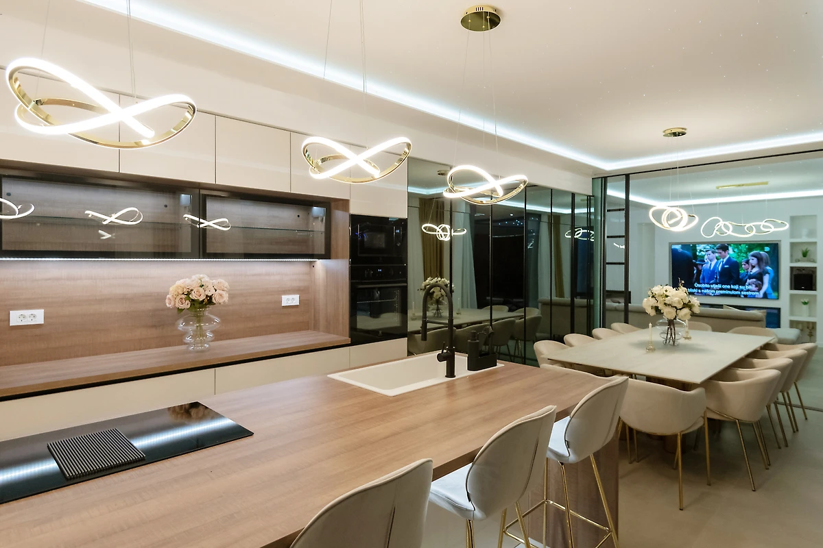 The kuchnia otwarta, od płyta indukcyjna, jest wyposażone w chłodziarka, mikrofalówka, piekarnik, zamrażarka, zmywarka, naczynia/sztućce, przybory kuchenne, ekspres do kawy i opiekacz/toster.