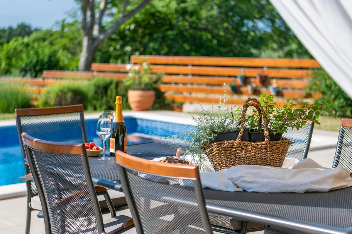 Zakwaterowanie jest wyposażone w następujące rzeczy ogród, taras, pralka, grill, kominek, internet (wifi), suszarka do włosów, klimatyzacja, basen prywatny, parking na otwartej przestrzeni w przy budynku, antena satelitarna.