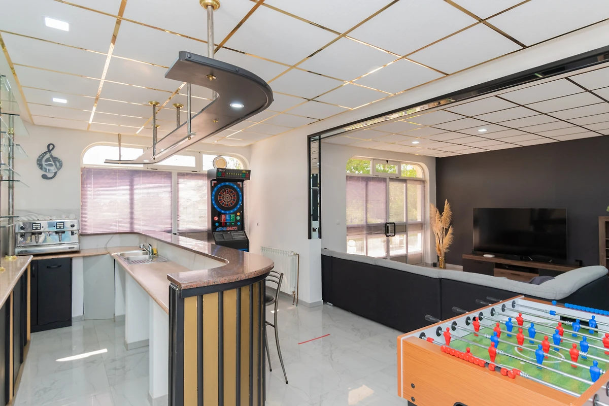 Zakwaterowanie jest wyposażone w następujące rzeczy ogród, meble ogrodowe, taras, pralka, suszarka, grill, żelazko, internet (wifi), suszarka do włosów, siłownia, klimatyzacja, basen prywatny, parking na otwartej przestrzeni w przy budynku, Telewizor, antena satelitarna.