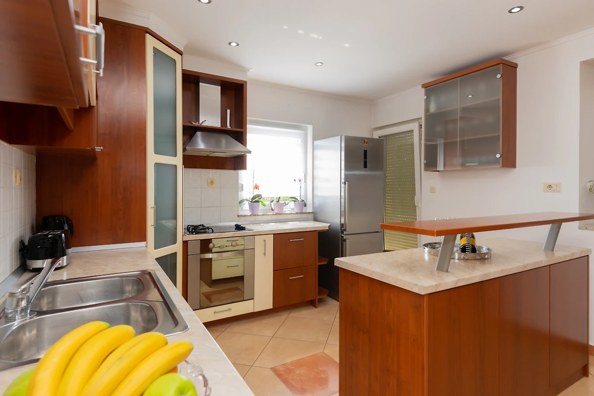 The kuchnia otwarta, od kuchenka gazowa, jest wyposażone w chłodziarka, mikrofalówka, piekarnik, zamrażarka, zmywarka, naczynia/sztućce, przybory kuchenne i ekspres do kawy.