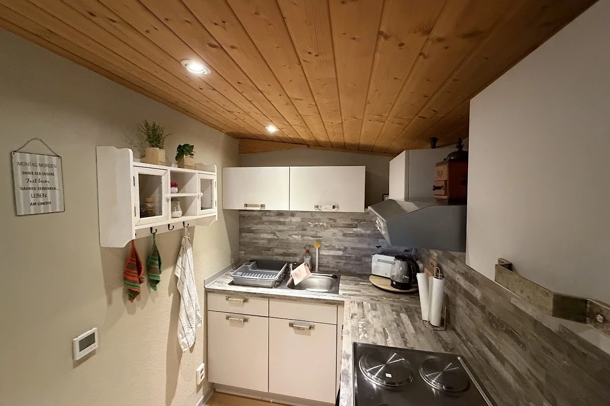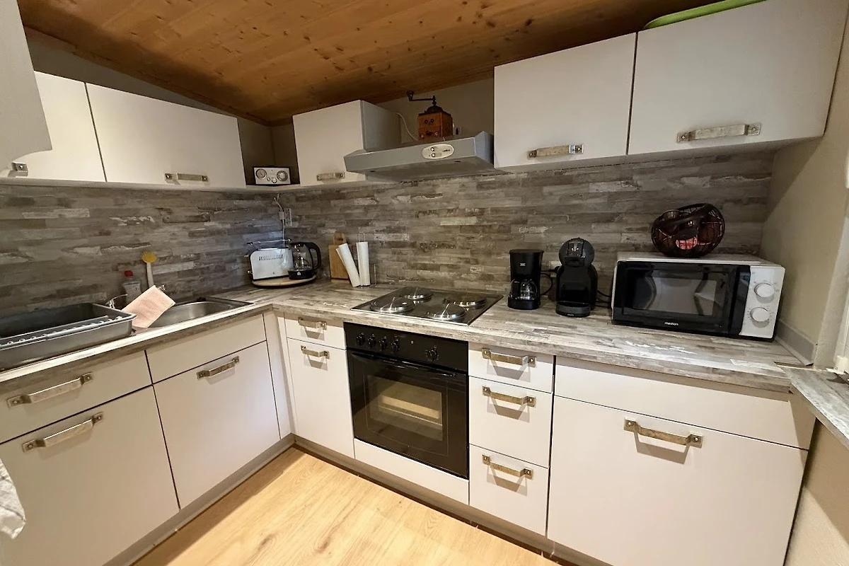 W pełni wyposażona kuchnia z piekarnikiem, ekspresem do kawy, tosterem i czajnikiem spełni wszystkie oczekiwania, aby przygotować posiłki. Mała łazienka jest wyposażona w prysznic, WC i suszarkę do włosów, ręczniki i pościel są oczywiście na miejscu, więc nie muszą się Państwo o nic martwić. Ogrzewanie podłogowe jest w łazience, kuchni i jadalni.