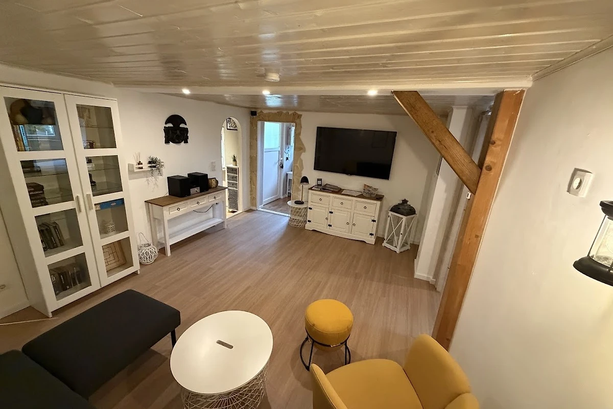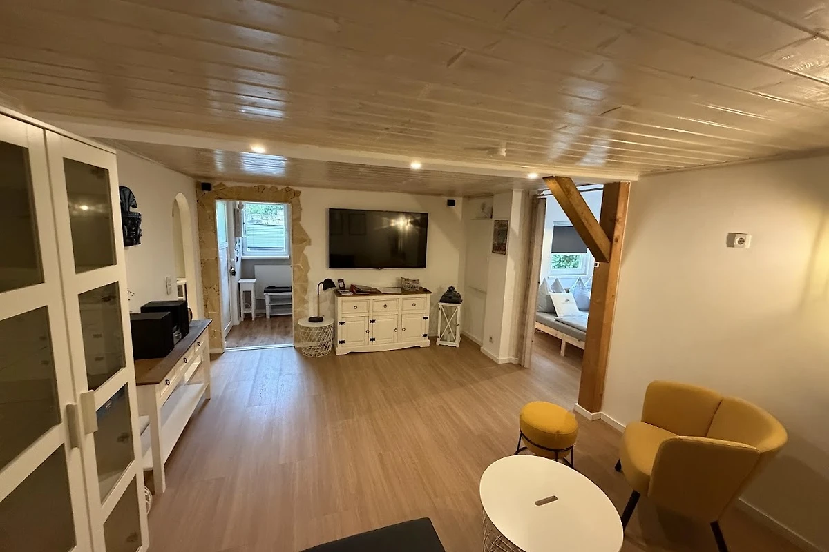 Przytulny salon jest urządzony z 65-calowym telewizorem z płaskim ekranem, w tym Freenet TV, oraz zestawem wypoczynkowym.