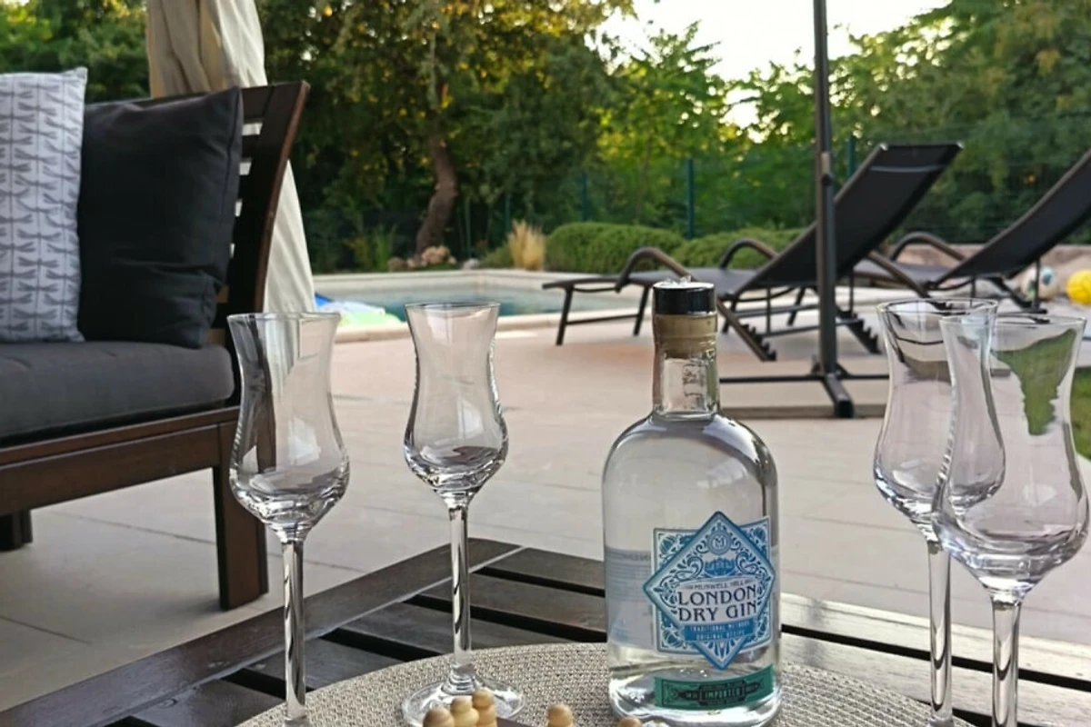 Zakwaterowanie jest wyposażone w następujące rzeczy ogród, meble ogrodowe, ogrodzona działka, taras, pralka, grill, żelazko, internet (wifi), suszarka do włosów, jacuzzi, spa, klimatyzacja, basen prywatny, parking na otwartej przestrzeni w przy budynku, Telewizor.