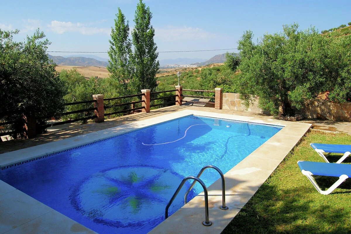 Domek z basenem, położony 15 min. Alora w prowincji Malaga. Dom ma dwa piętra i znajduje się na szczycie wzgórza, w otoczeniu gajów oliwnych, pomarańczy, cytryny i migdałów. Dom posiada podwójne drzwi liści i nie ma schodów. Domek posiada duży taras z pergolą, która tworzy zacienione miejsce i ma również grill i górnego tarasu jest basen. Jest parking w nieruchomości. Dom oferuje prywatność, spokój i wspaniałe widoki, także jest dobrze do wszystkich rodzajów aktywności na świeżym powietrzu oraz w celu nawiązania kontaktu z naturą. Idealny dom wakacyjny dla dwóch rodzin.