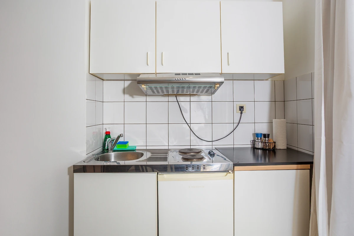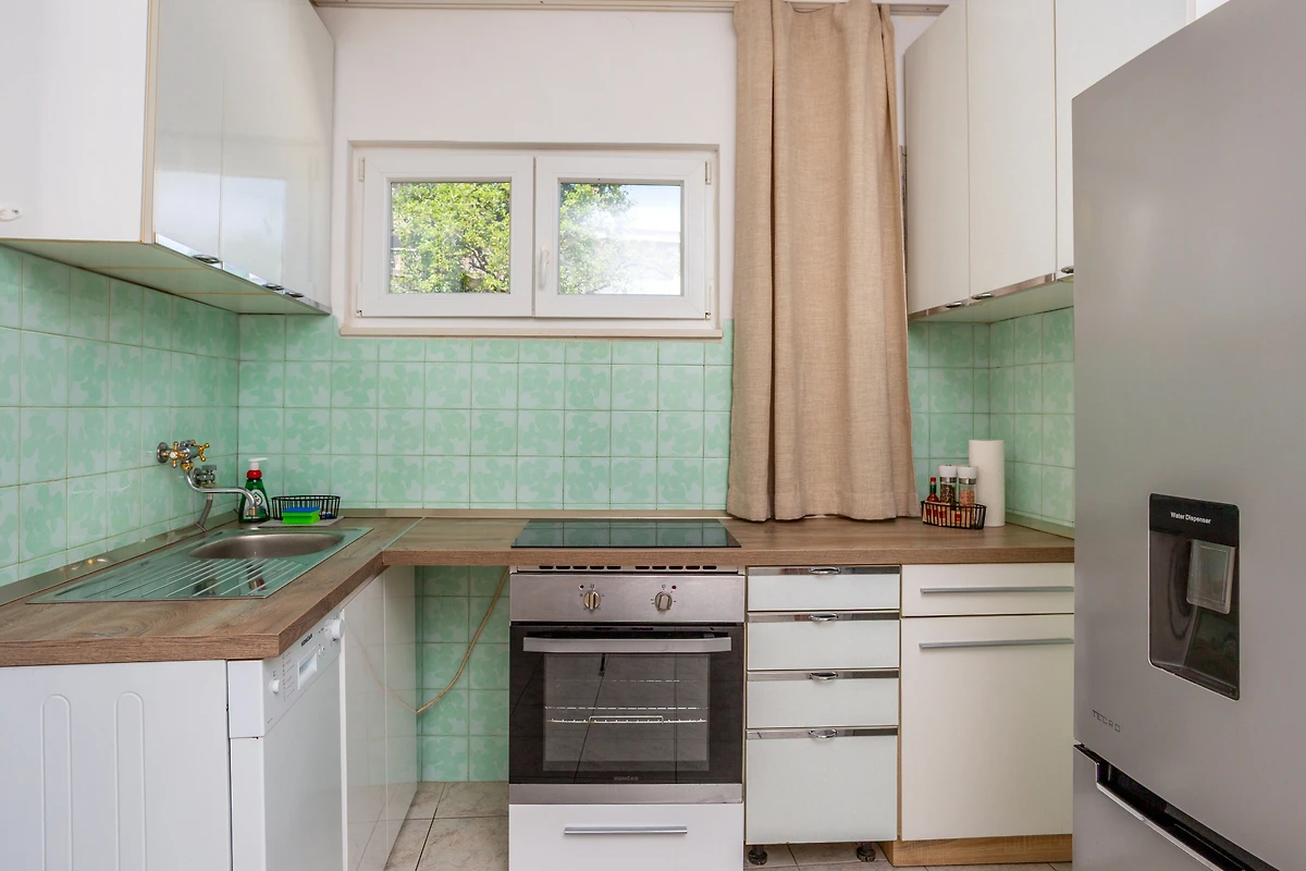 The kuchnia otwarta, od płyta witroceramiczna, jest wyposażone w chłodziarka, piekarnik, zamrażarka, zmywarka, naczynia/sztućce, przybory kuchenne i ekspres do kawy.