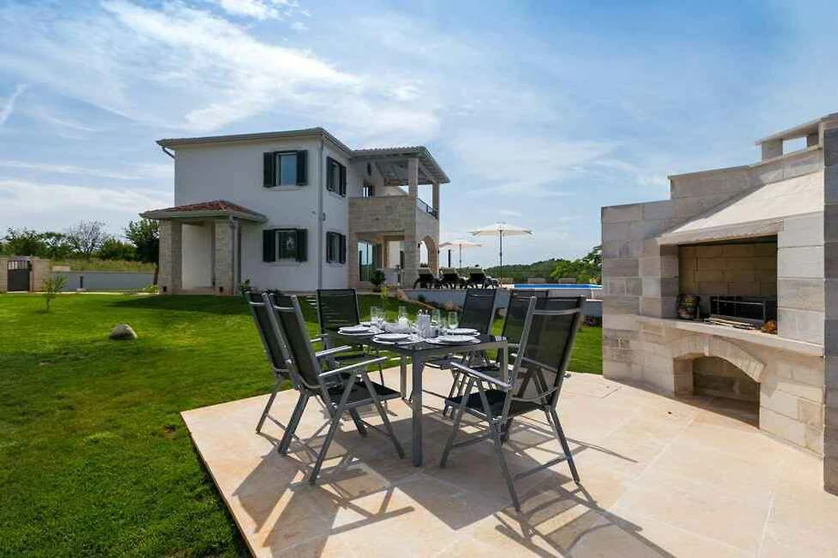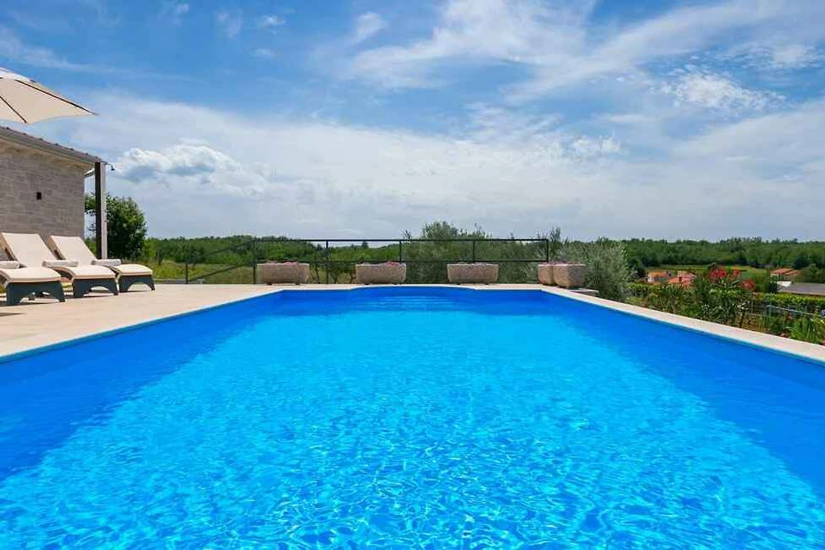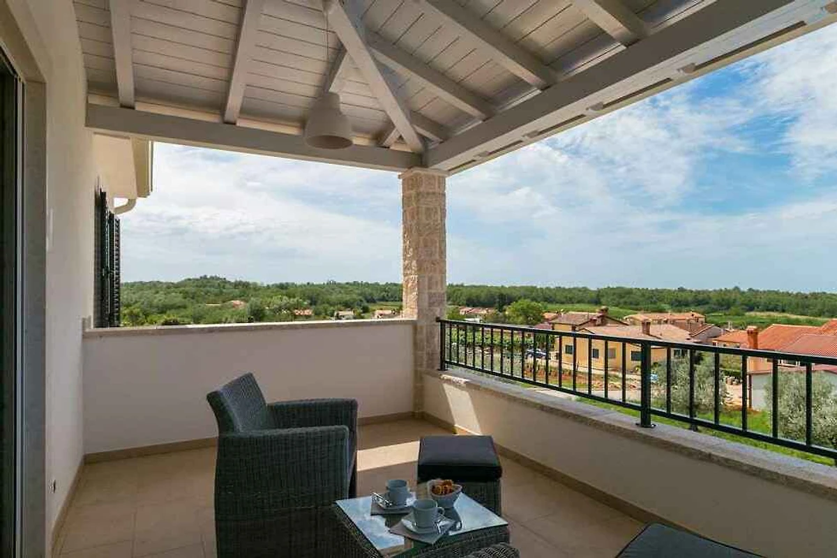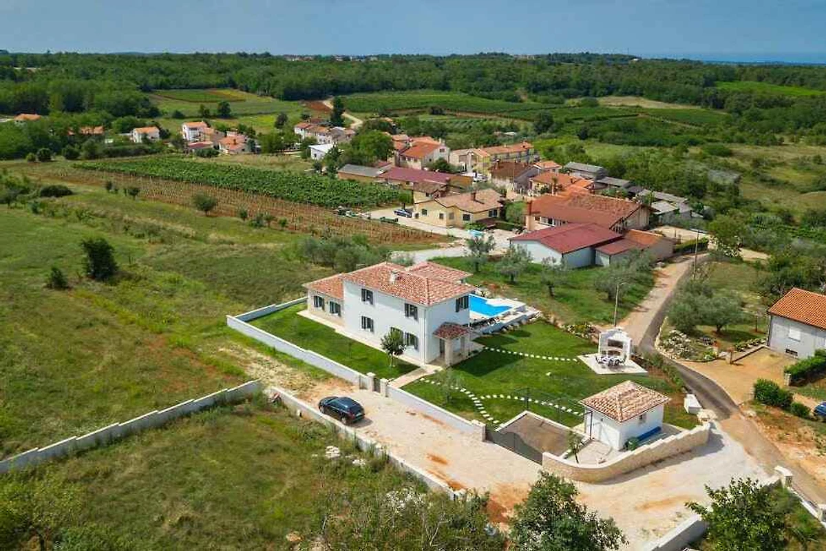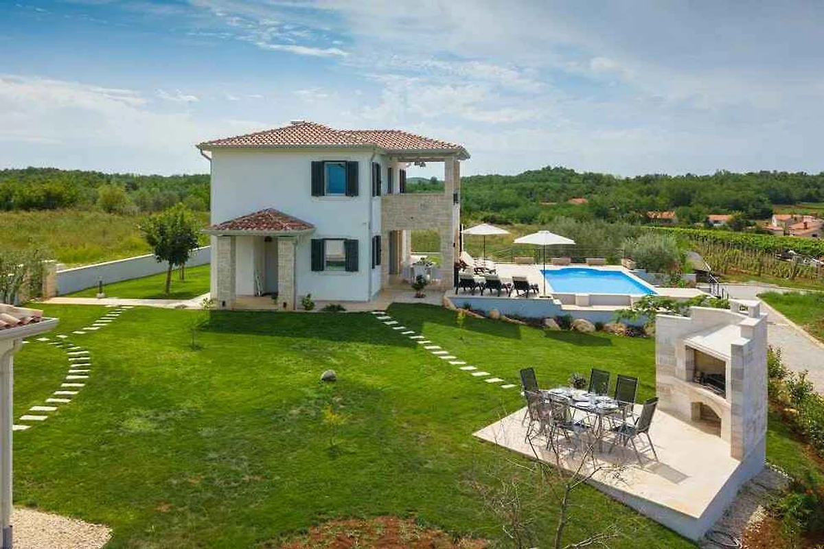 Vižinada. Willa znajduje się na zamkniętej posesji, otoczonej płotem. zapierający dech w piersiach widok na dolinę Mirna i urokliwe kamienne miasteczka w oddali Parking (na 2 samochody os.) na posesji.