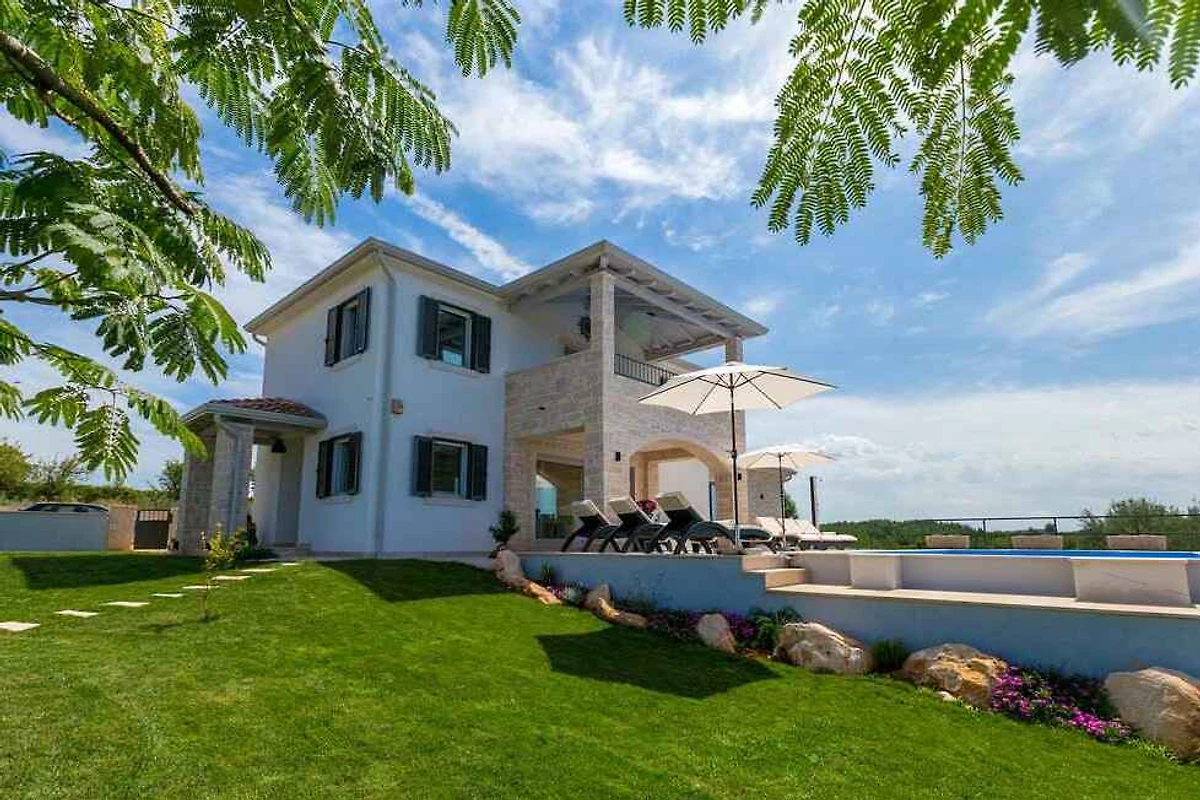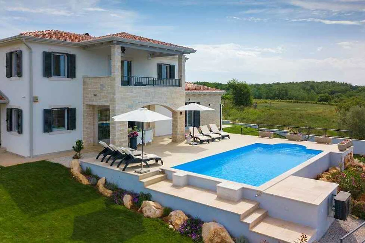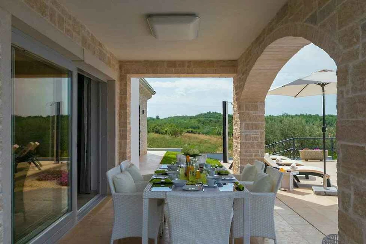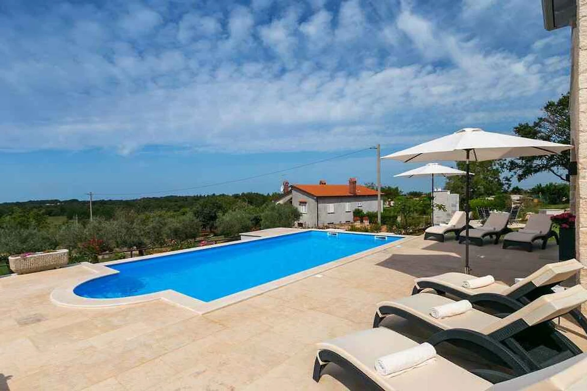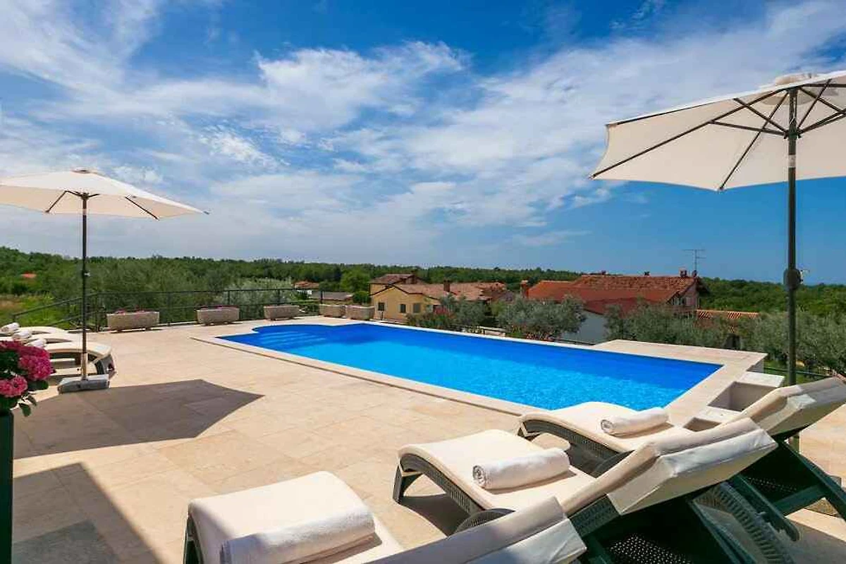 Vižinada. Willa znajduje się na zamkniętej posesji, otoczonej płotem. zapierający dech w piersiach widok na dolinę Mirna i urokliwe kamienne miasteczka w oddali Parking (na 2 samochody os.) na posesji.