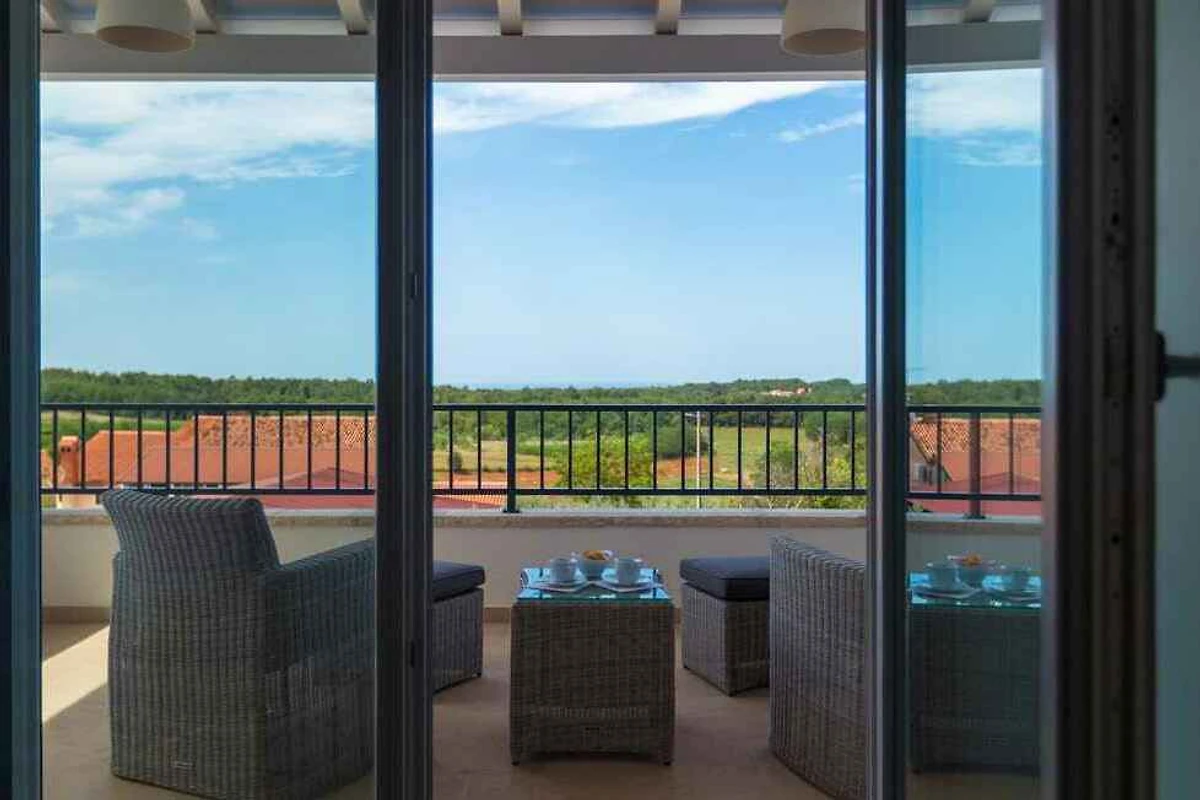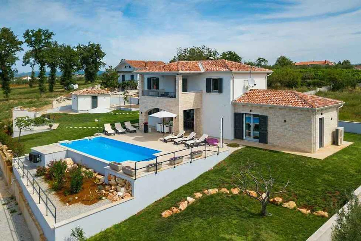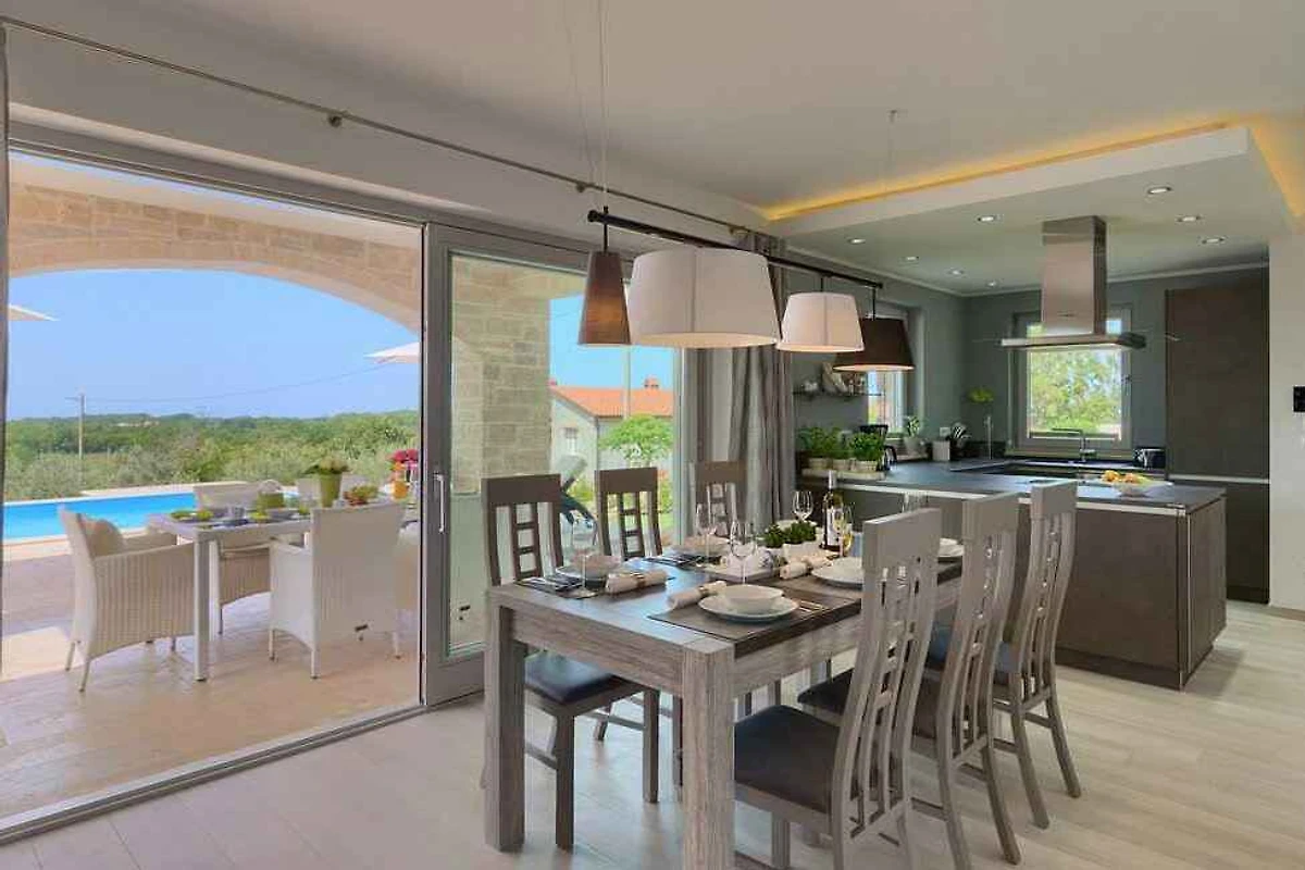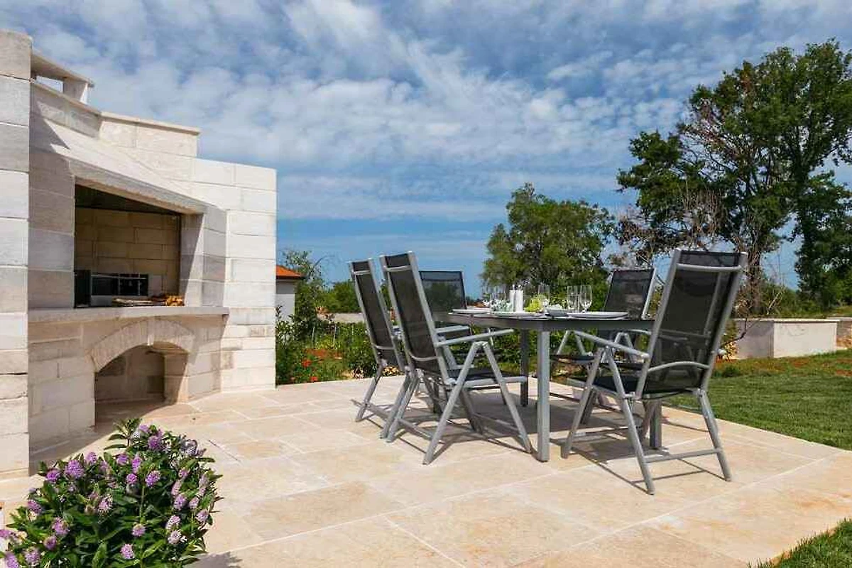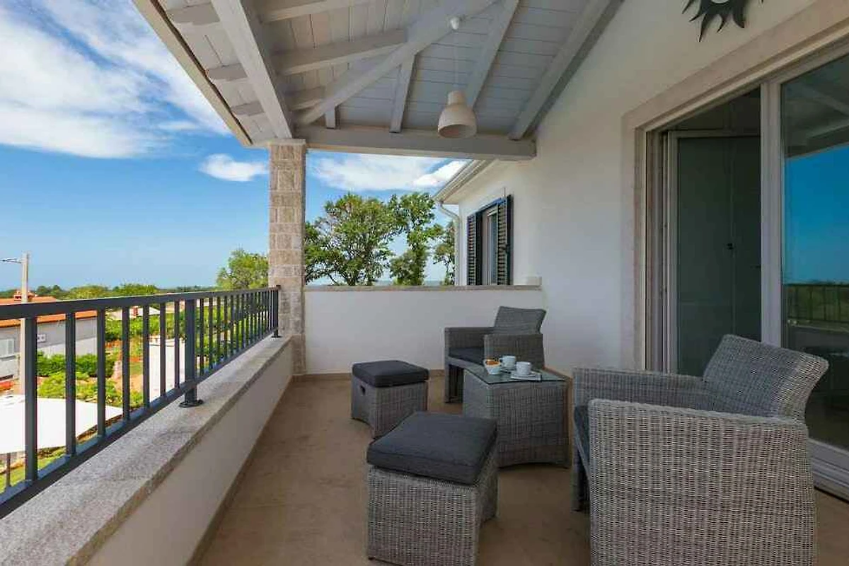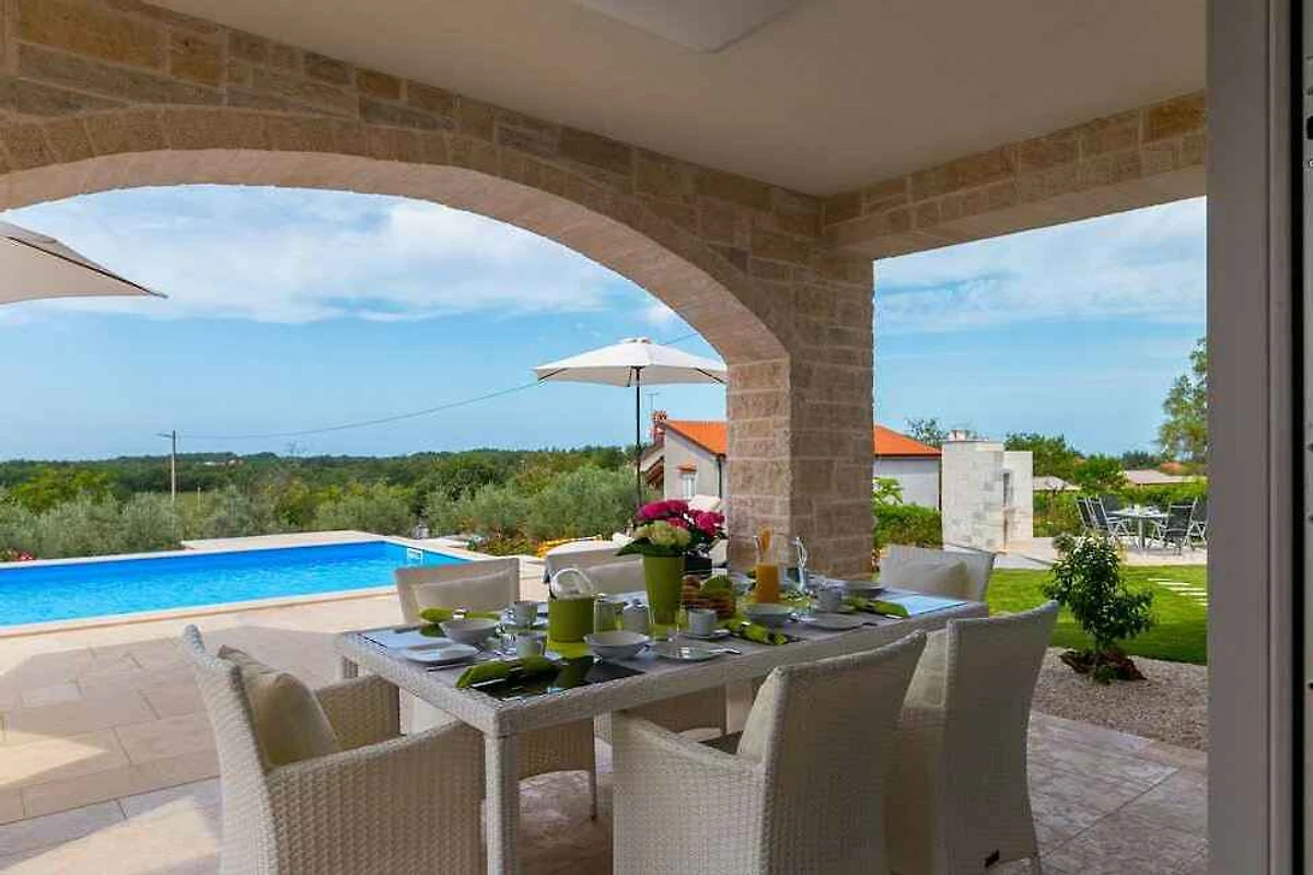 Vižinada. Willa znajduje się na zamkniętej posesji, otoczonej płotem. zapierający dech w piersiach widok na dolinę Mirna i urokliwe kamienne miasteczka w oddali Parking (na 2 samochody os.) na posesji.
