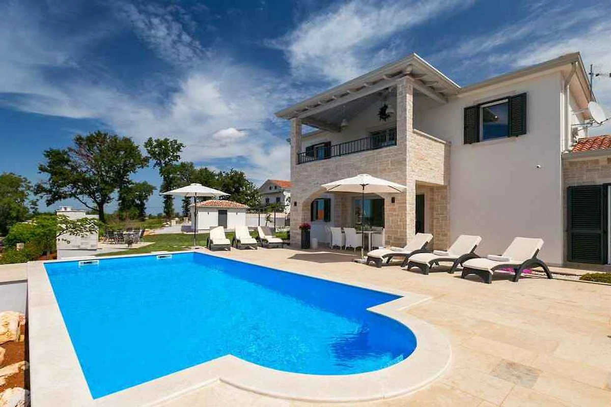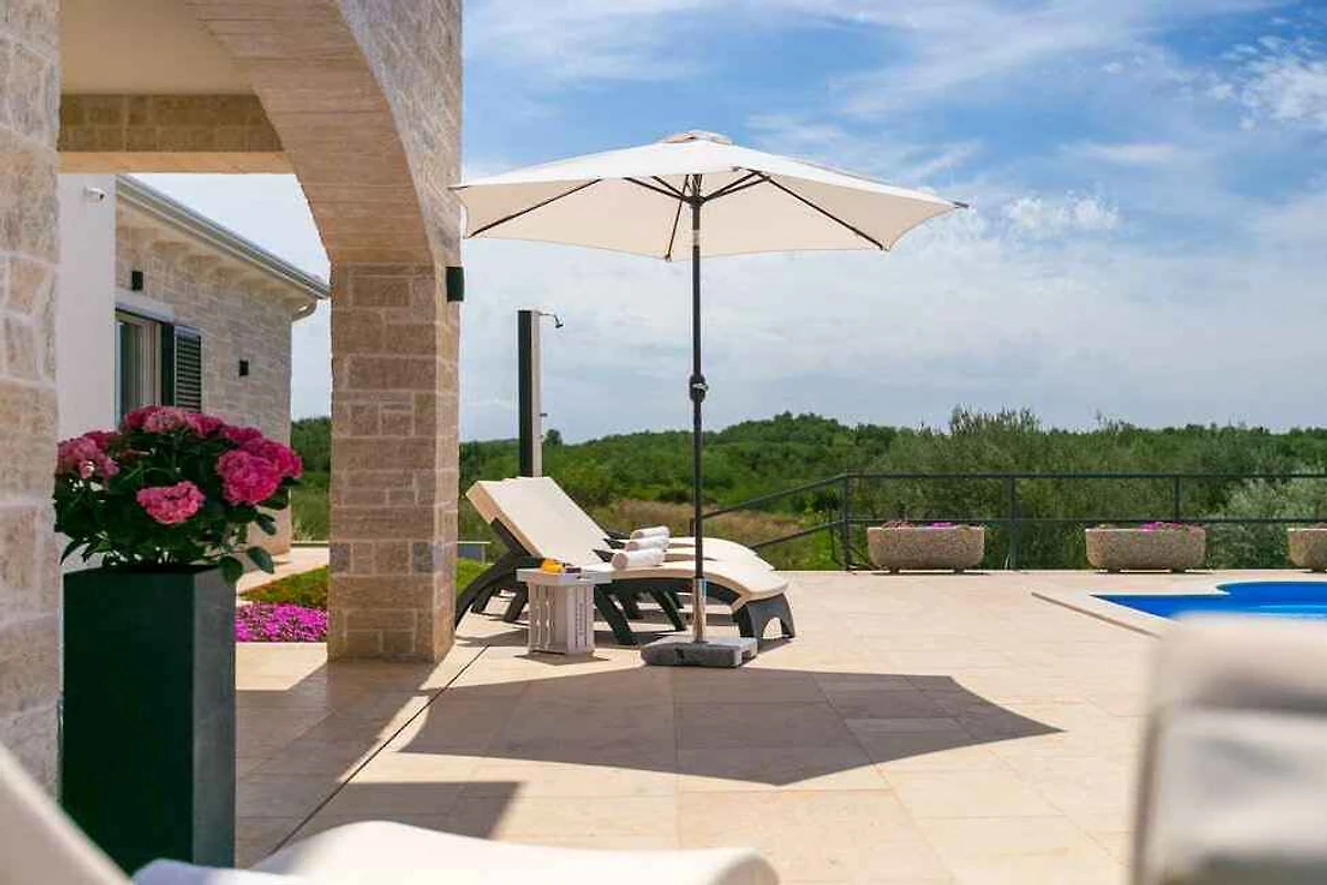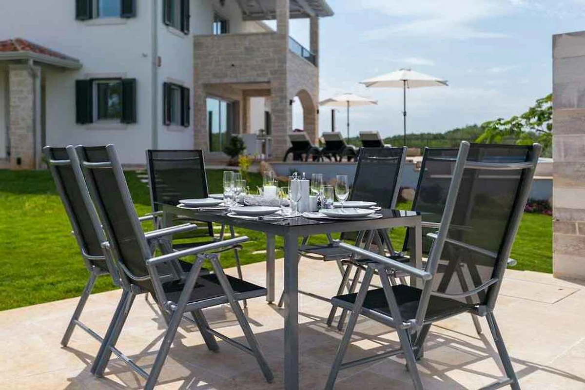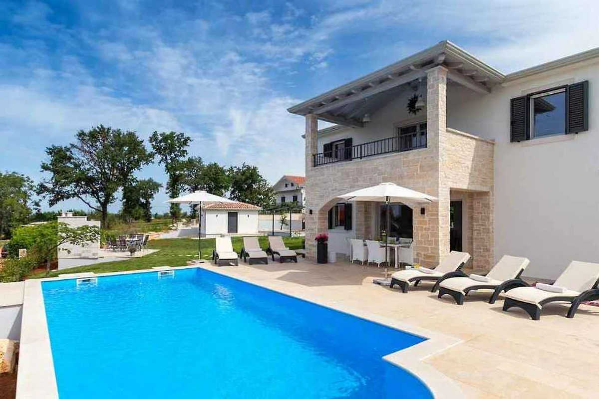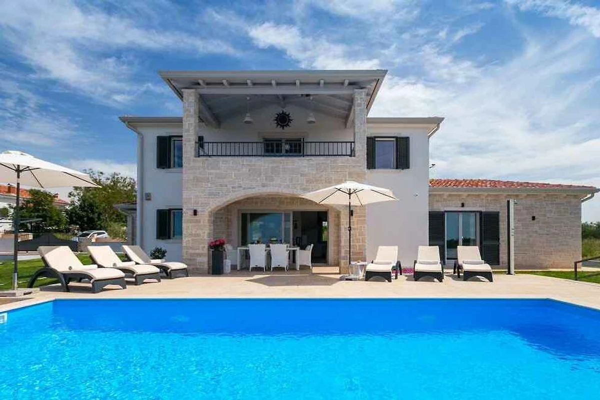 Vižinada. Willa znajduje się na zamkniętej posesji, otoczonej płotem. zapierający dech w piersiach widok na dolinę Mirna i urokliwe kamienne miasteczka w oddali Parking (na 2 samochody os.) na posesji.
