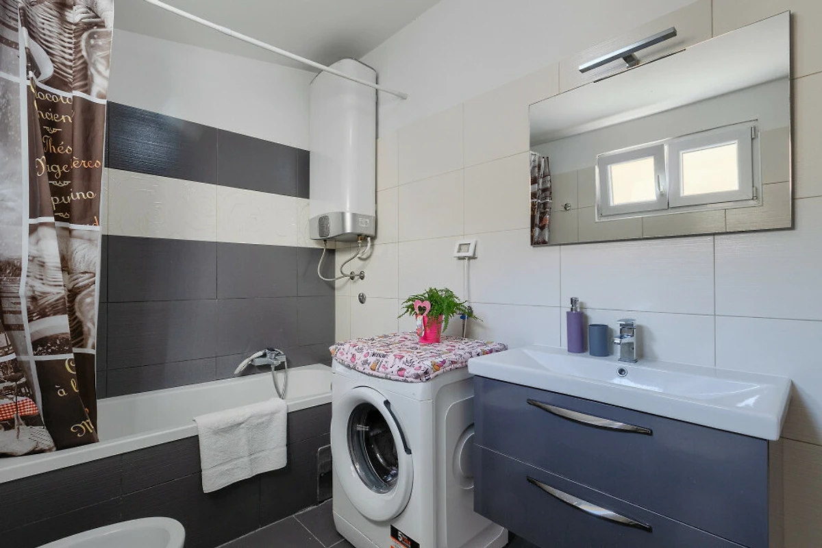 Zakwaterowanie jest wyposażone w następujące rzeczy ogród, meble ogrodowe, ogrodzona działka, pralka, grill, żelazko, internet (wifi), suszarka do włosów, klimatyzacja, parking na otwartej przestrzeni w przy budynku, 1 TV, antena satelitarna.