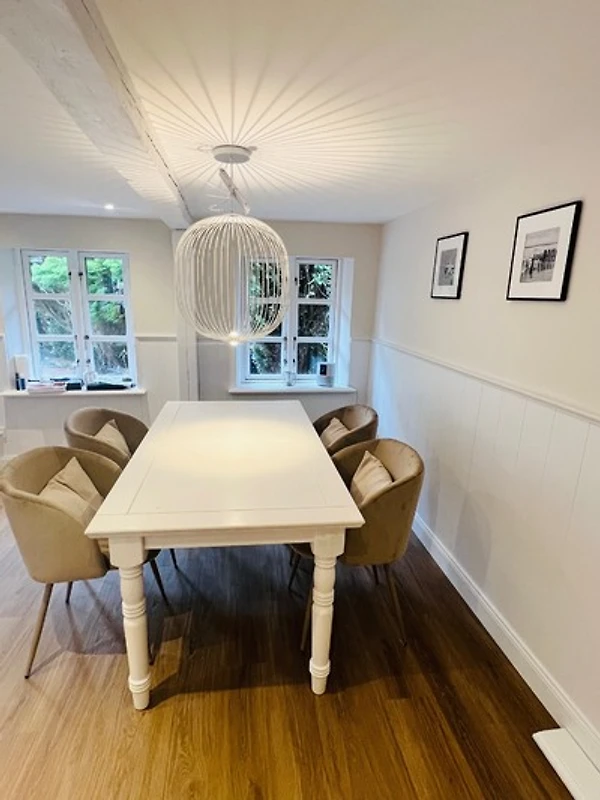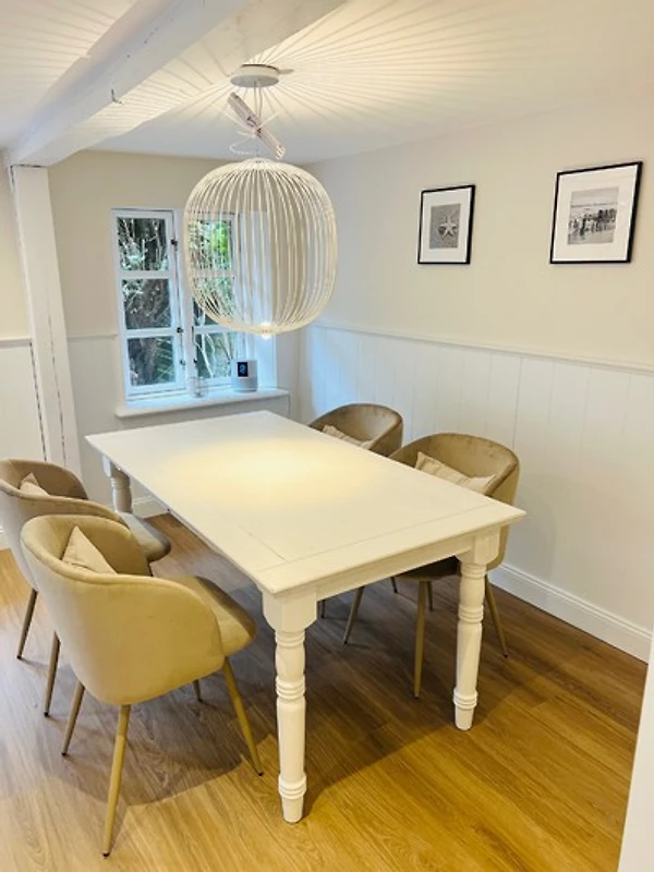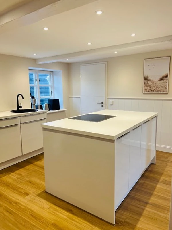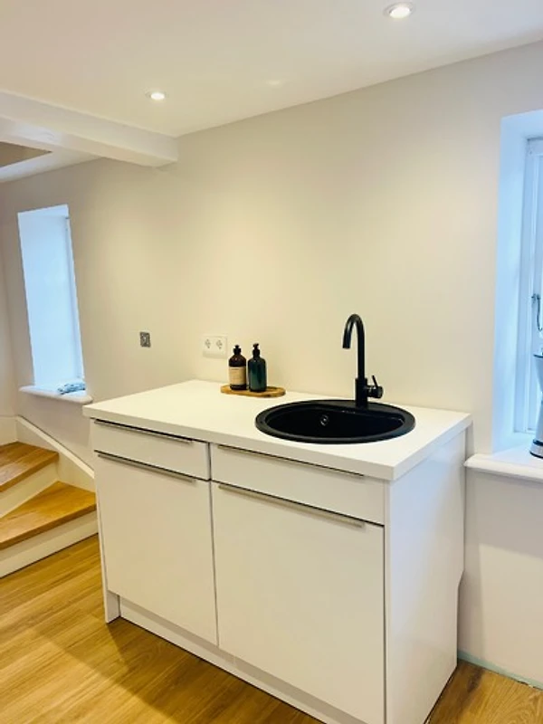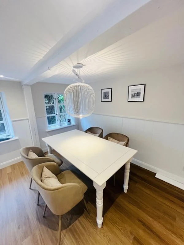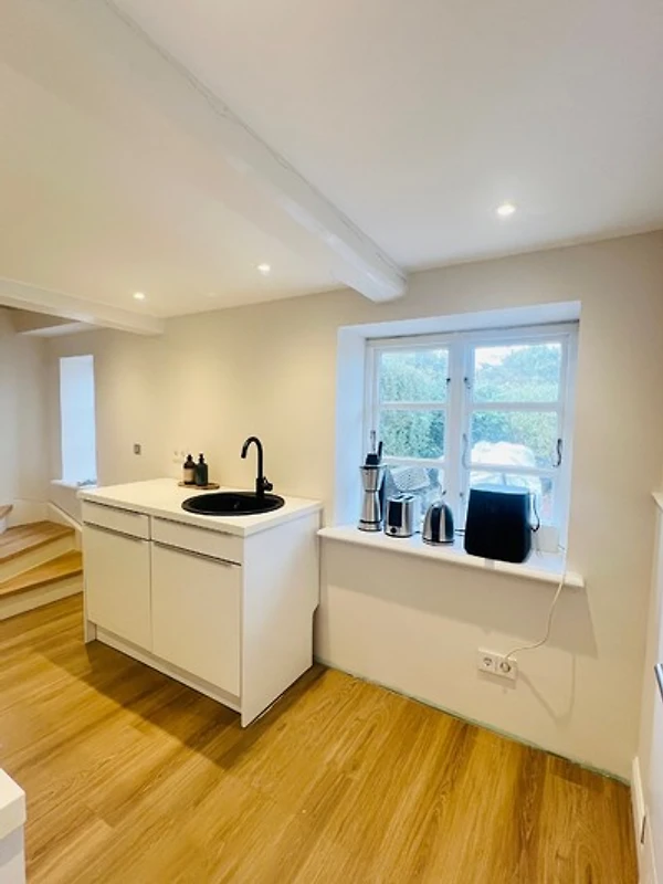 Spędzą Państwo urlop w stylowej, przyjemnej atmosferze z dużą dbałością o szczegóły. Na parterze znajduje się salon z jadalnią oraz nowoczesna, otwarta i w pełni wyposażona kuchnia (kuchenka z płytą ceramiczną, piekarnik, zmywarka, lodówka z zamrażalnikiem, toster, ekspres do kawy (filtr + Nespresso) i czajnik) oraz wyjście na dwa ładne, osłonięte od wiatru tarasy.
