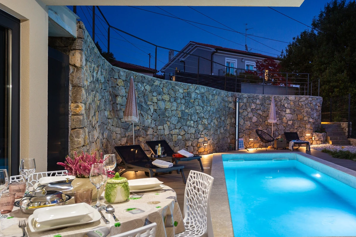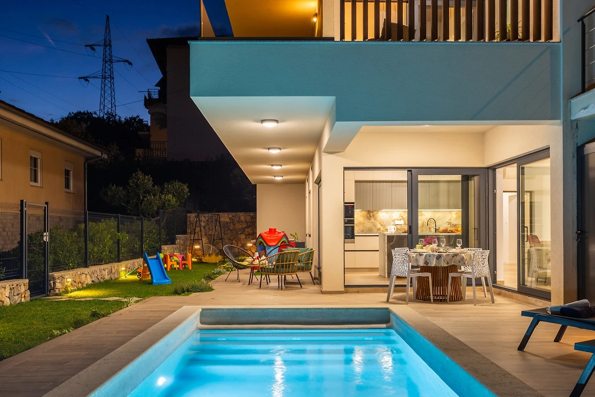 The willa w Matulji ma 3 sypialnie i obłożenie dla 6 osób.