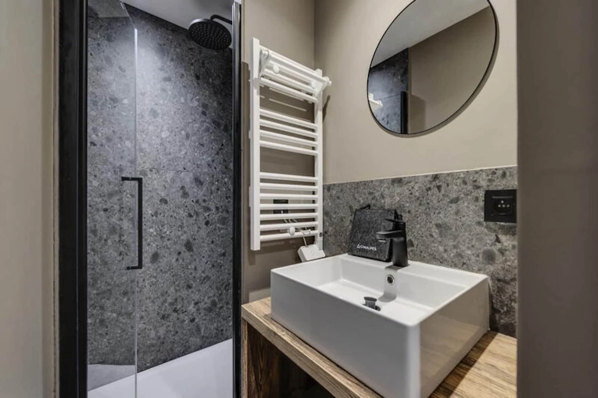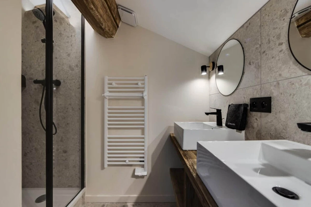 Apartament o powierzchni 68 metrów kwadratowych komfortowo pomieści do czterech osób dorosłych i troje dzieci. Układ jest zarówno praktyczny, jak i przytulny, z trzema dobrze wyposażonymi sypialniami, każda z łazienką z prysznicem, zapewniającą dodatkową prywatność. Na parterze znajduje się przytulny salon z jadalnią, uzupełniony otwartą kuchnią, wyposażoną we wszystko, co potrzebne do przygotowania obfitych posiłków po dniu spędzonym na stoku. Dodatkowe udogodnienia obejmują schowek na narty, kryty parking i dostęp do Wi-Fi, zapewniając bezproblemowy i komfortowy pobyt. Prosimy pamiętać, że zwierzęta domowe i palenie są zabronione. Wymagana jest kaucja.