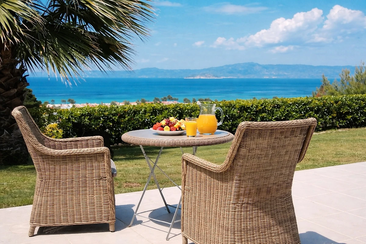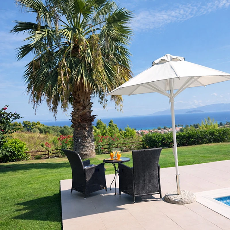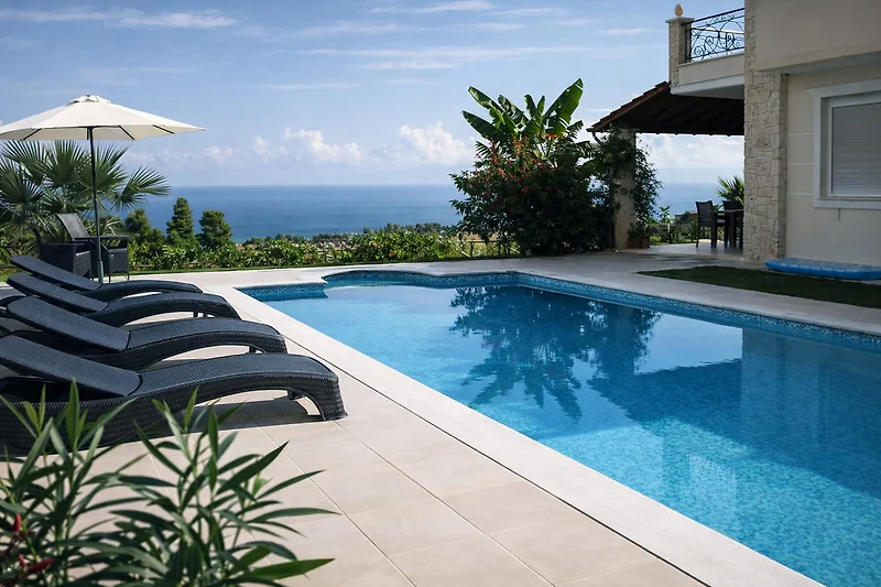 Willa wakacyjna w Pefkochori: blisko plaży, prywatny ogrodzony teren jako duży ogród z bajecznym widokiem i idealna lokalizacja na Chalkidiki.