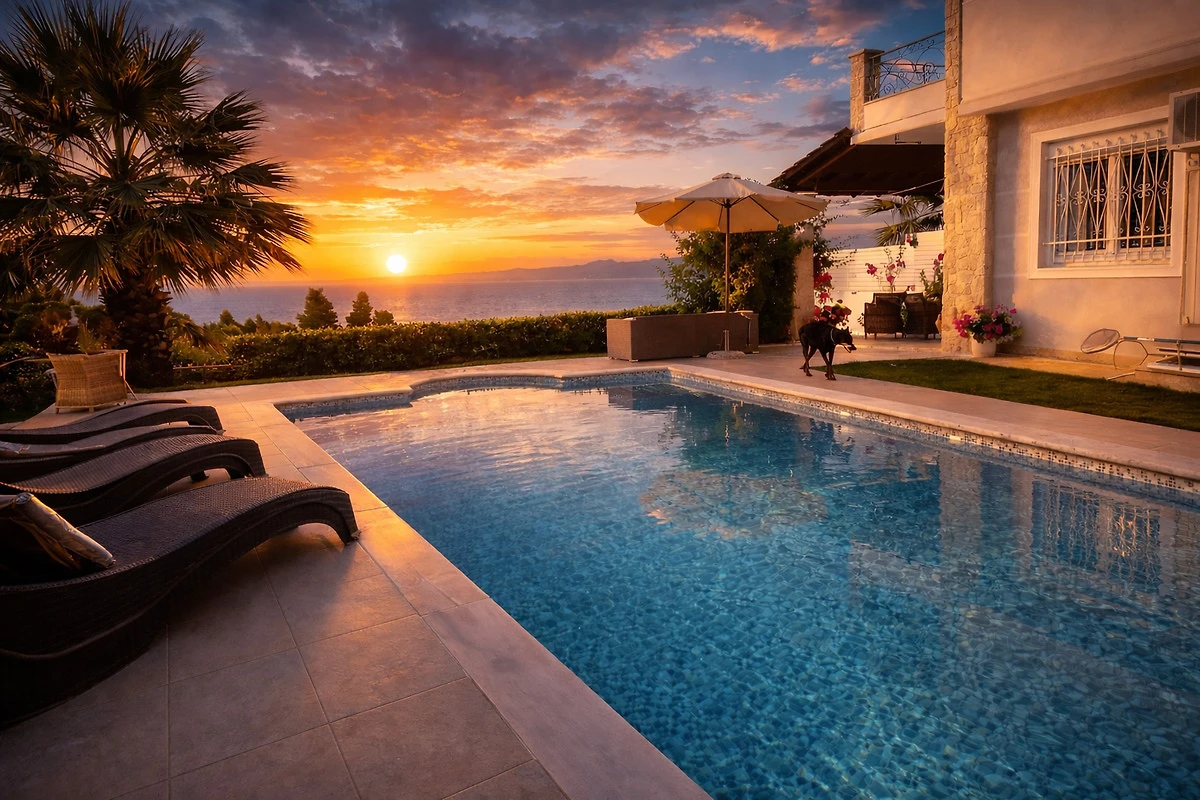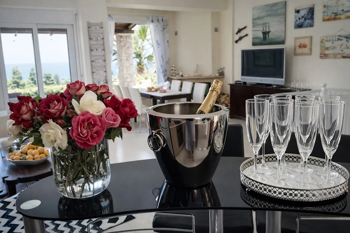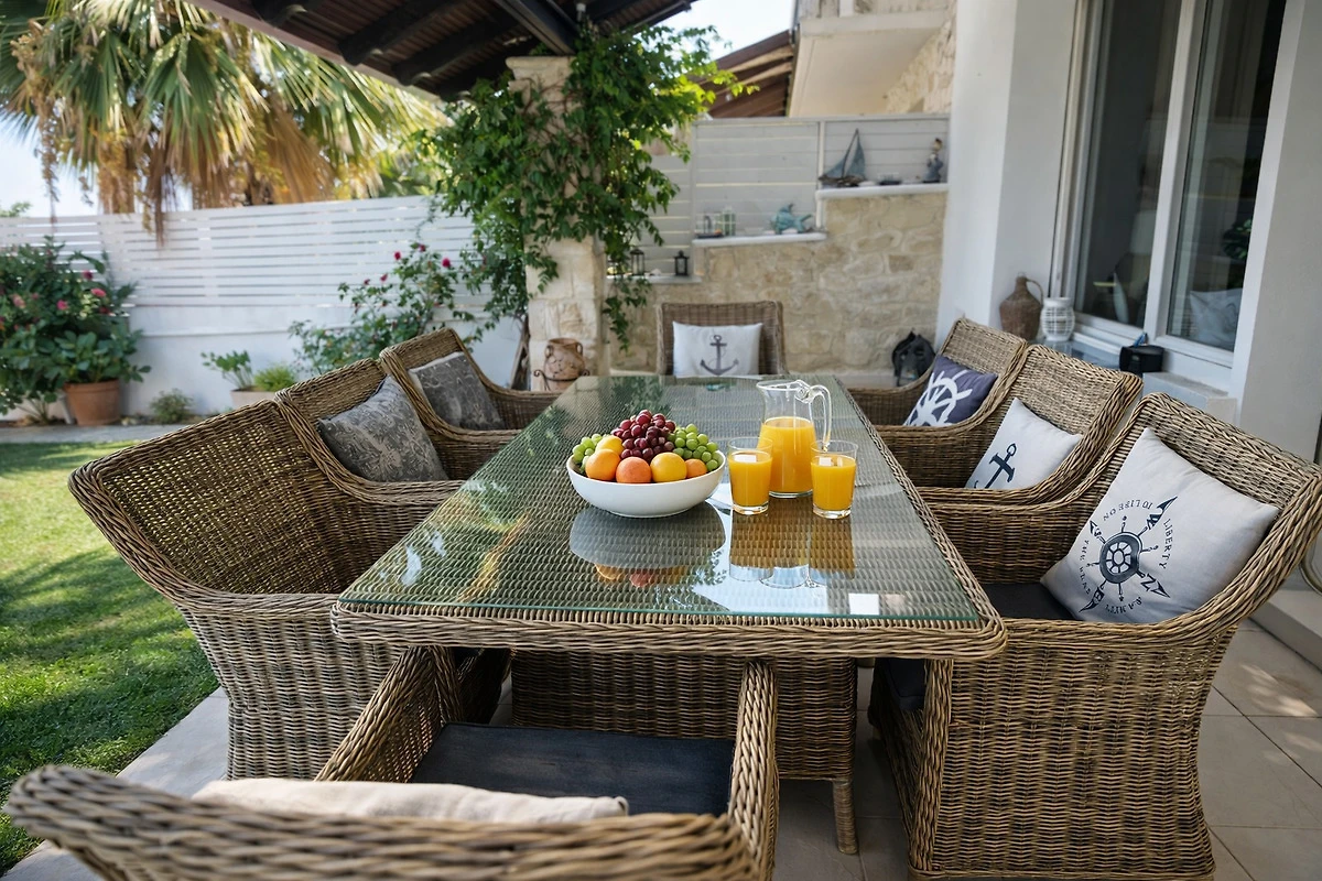 Witamy w Villa Gabriela w Pefkochori, Chalkidiki – Twoim idealnym domku wakacyjnym dla maksymalnie 8 gości. Na przestronnych 140 m² spędzisz relaksujące dni urlopu z całą rodziną. Willa oferuje cztery sypialnie, dwie łazienki oraz toaletę dla gości, zapewniając wystarczającą prywatność. Otwarta część dzienna z kominkiem zachęca do wspólnych wieczorów, a na tarasie lub balkonie czekają chwile na świeżym powietrzu. W zadbanym ogrodzie znajduje się grill do BBQ na towarzyskie wieczory, a basen zapewnia orzeźwienie w ciepłe dni. Dla małych gości przygotowano łóżeczko dziecięce i krzesełko do karmienia. Kuchnia jest wyposażona w zmywarkę, kuchenkę mikrofalową, czajnik i ekspres do kawy – idealne dla osób samodzielnie przygotowujących posiłki. Pościel jest zapewniona, a pralka i suszarka ułatwiają dłuższe pobyty. Telewizor i bezpłatne Wi-Fi oferują rozrywkę i informacje. Do Państwa dyspozycji są zarówno miejsce parkingowe, jak i garaż. Klimatyzacja zapewnia zawsze przyjemną temperaturę. Oferta obejmuje również żelazko i suszarkę do włosów. Villa Gabriela jest przeznaczona wyłącznie dla niepalących i serdecznie wita rodziny. Przeżyjcie niezapomniane wakacje w tym idyllicznym obiekcie!