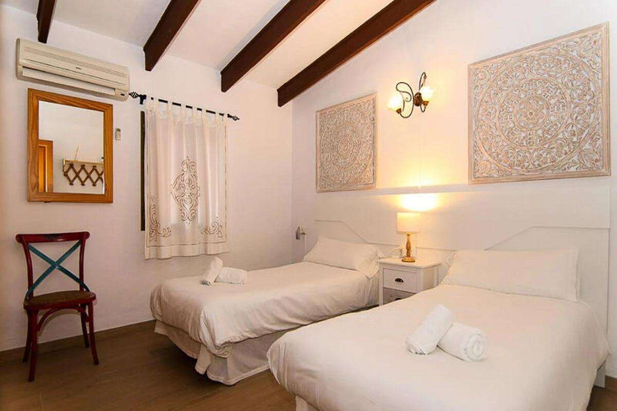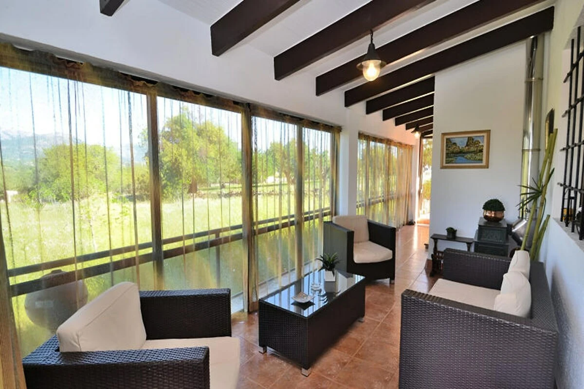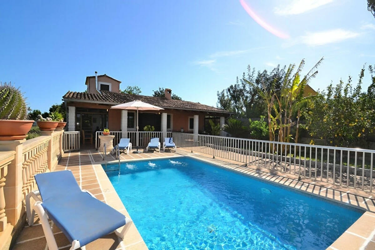 Pośród pagórków Majorki, ta wspaniała willa oferuje idylliczne miejsce na wypoczynek z zapierającymi dech w piersiach widokami na góry Serra de Tramuntana. Idealna dla rodzin lub grup poszukujących spokojnego wypoczynku, nieruchomość jest dogodnie położona między miejscowościami Campanet i Inca, zaledwie 20 minut jazdy samochodem od złotych plaż zatoki Pollensa i zatoki Alcudia. Tutaj znajdziesz idealną równowagę między spokojem a dostępnością, w otoczeniu naturalnego piękna wyspy. \n\nWilla została zaprojektowana z myślą o komforcie i relaksie, oferując przestronny salon z jadalnią, wyposażony w telewizję satelitarną, odtwarzacz CD i DVD oraz Wi-Fi. Otwarta kuchnia jest w pełni wyposażona w nowoczesne sprzęty, w tym zmywarkę i pralkę, i oferuje bezpośredni dostęp do tylnego tarasu. Nieruchomość oferuje trzy przytulne sypialnie, każda z dwoma pojedynczymi łóżkami, oraz dwie łazienki z prysznicami i toaletami. Na zewnątrz znajduje się prywatny basen, który można zakryć dla bezpieczeństwa dzieci, zachęcający do relaksu w śródziemnomorskim słońcu. Szeroka weranda z meblami ogrodowymi i duży taras z miejscem do grillowania zapewniają idealne warunki do spożywania posiłków na świeżym powietrzu i spędzania niezapomnianych wieczorów z bliskimi.\n\nLokalizacja willi jest idealna do zwiedzania tętniącego życiem miasta Inca, oddalonego zaledwie o 3 km, gdzie można odkryć lokalne targi, urocze restauracje i atrakcje kulturalne. Miłośnicy golfa docenią bliskość pól golfowych Aucanada i Pollença, do których można dotrzeć w 20 minut. Niezależnie od tego, czy szukasz przygód, czy relaksu, ta nieruchomość umieści Cię w samym sercu skarbów Majorki.\n\nDzięki panoramicznym widokom, nowoczesnym udogodnieniom i doskonałej lokalizacji, ta willa to idealny wybór na niezapomniany wypad na Majorkę. Pozwól, aby spokojna okolica i ciepła śródziemnomorska bryza stworzyły wspomnienia, które pozostaną z Tobą na całe życie.