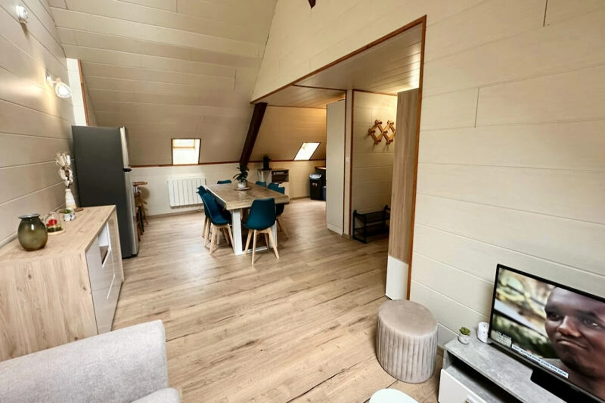 Apartament został zaprojektowany tak, aby pomieścić do 8 osób, w tym 6 dorosłych, zapewniając każdemu własną przestrzeń do relaksu. Otwarta kuchnia jest w pełni wyposażona, co ułatwia przygotowywanie i wspólne posiłki, a nowoczesne udogodnienia, takie jak pralka, suszarka i telewizor, zwiększają wygodę pobytu. Przemyślany układ i ciepły wystrój tworzą przyjazną atmosferę, idealną do tworzenia wspomnień z bliskimi.