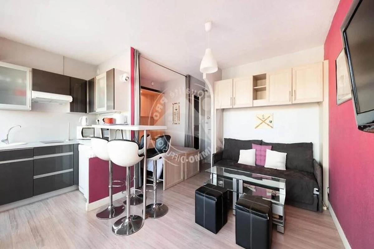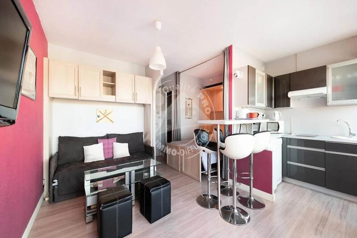 To urocze studio o powierzchni 25 m² znajduje się na 2. piętrze bezpiecznej rezydencji „St Louis” i oferuje bezpośredni dostęp do North Beach bez konieczności przechodzenia przez żadne drogi. Studio może pomieścić maksymalnie 4 osoby i obejmuje jasny salon ze składanym łóżkiem o szerokości 140 cm i rozkładaną sofą o szerokości 140 cm, oba wyposażone w telewizor i klimatyzację. Z salonu można wyjść na taras z widokiem na morze, skierowany na zachód, wyposażony w meble ogrodowe i leżak, idealny do wypoczynku w promieniach słońca. W pełni wyposażona kuchnia zawiera zmywarkę, lodówkę, kuchenkę mikrofalową, piekarnik, 2-palnikową płytę grzejną oraz barek, dzięki czemu łatwo jest przygotować posiłki. Dla większej wygody łazienka wyposażona jest w toaletę i pralkę.