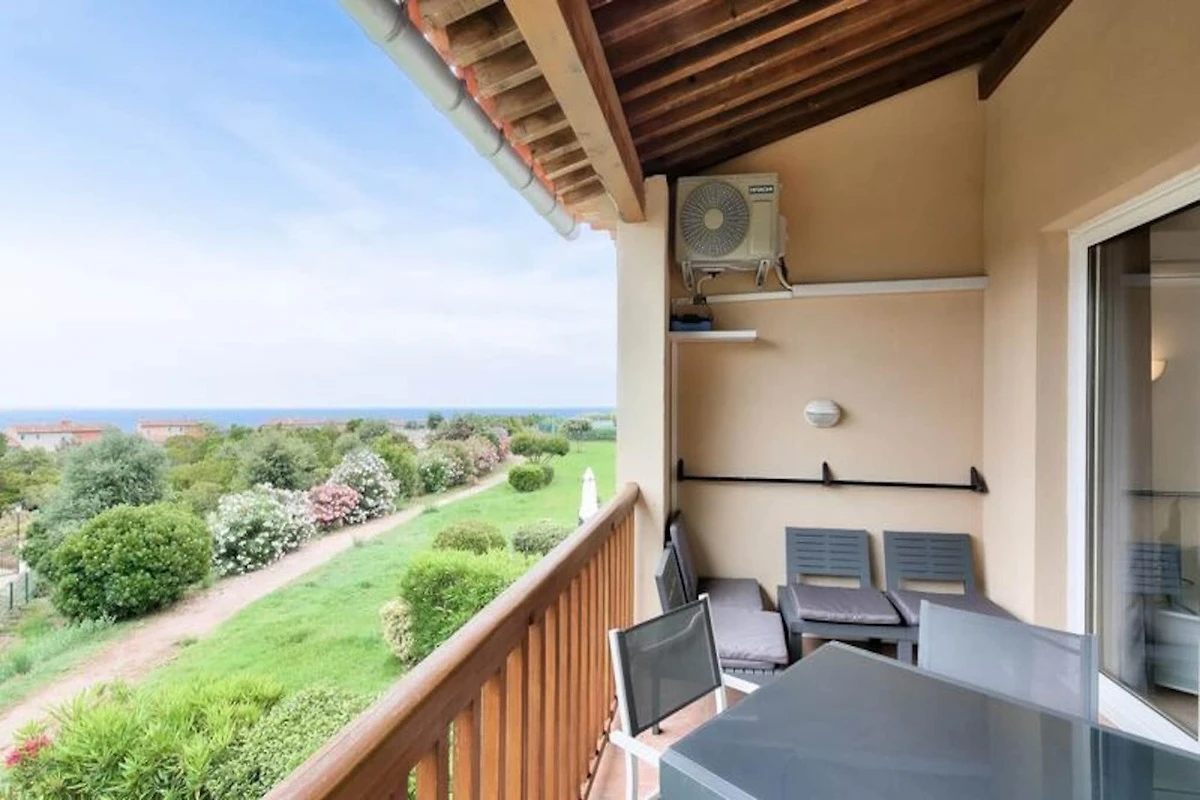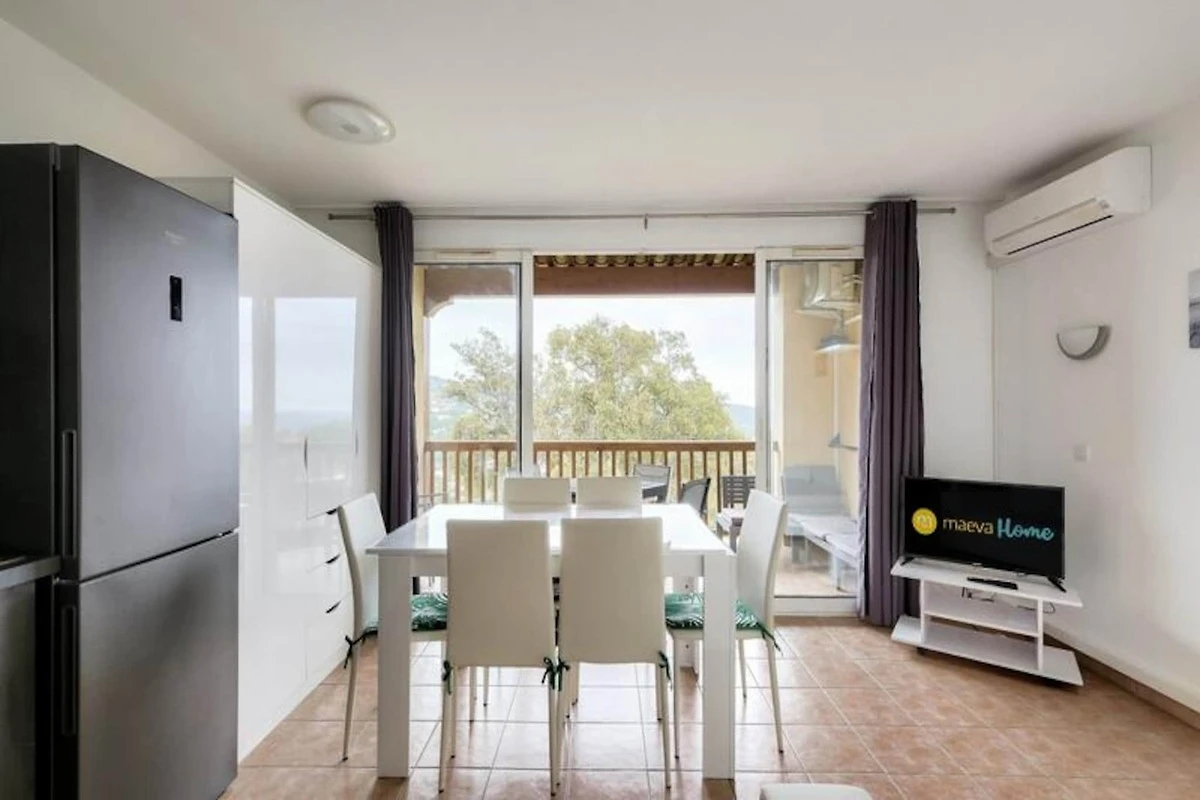 Obiekt po?o?ony jest pomi?dzy Saint-Raphael i Saint-Tropez, zaledwie kilka kilometrףw od pla? Sainte Maxime i Issambres, do ktףrych prowadzi malownicza ?cie?ka spacerowa o d?ugo?ci 4 km. Okolica oferuje rף?norodne zaj?cia na ?wie?ym powietrzu, w tym ?eglarstwo, narty wodne i kajakarstwo. Mo?esz zwiedzi? pobliskie miasta, takie jak Frיjus, Saint Raphael i Sainte Maxime, lub skorzysta? z lokalnych ofert sportowych, takich jak tenis, golf i jazda na quadach. Wspףlny basen dost?pny jest od maja do wrze?nia.
