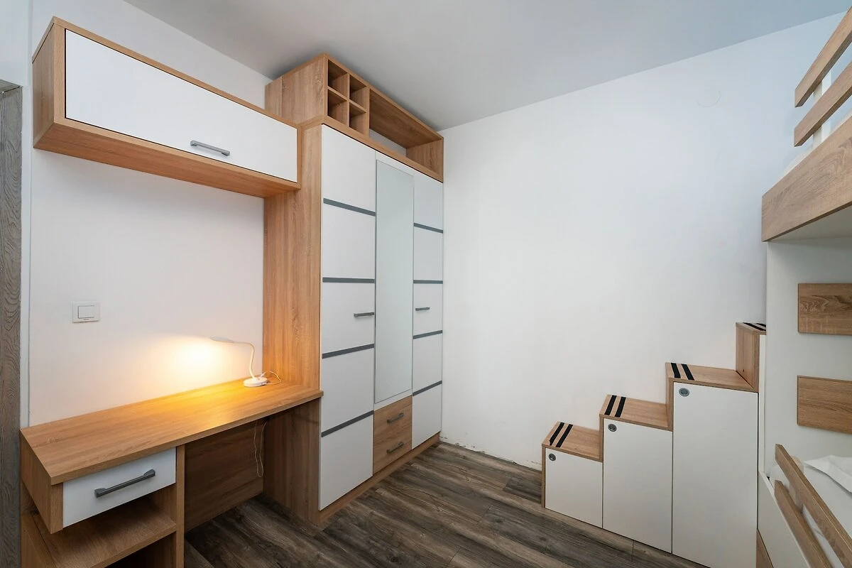 Witamy w apartamencie Sea View, Twoim spokojnym apartamencie o powierzchni 70 m², położonym w cichej dzielnicy mieszkalnej Meterize w Szybeniku. Ten uroczy apartament oferuje wspaniałe widoki na morze i jest idealnie przystosowany dla rodzin lub grup do pięciu osób. Oferuje dwie wygodne sypialnie i dwie łazienki dla maksymalnej wygody. W klimatyzowanej sypialni głównej znajduje się łóżko king-size, w drugim pokoju wygodne łóżko piętrowe, a w części wspólnej dwuosobowa sofa. Dla Twojego spokoju i wygody, tuż obok apartamentu znajduje się prywatne miejsce parkingowe w garażu.
