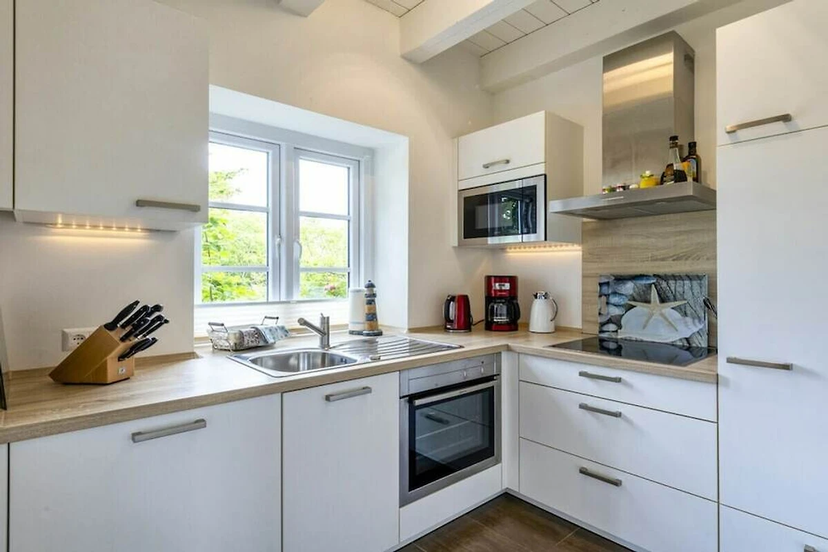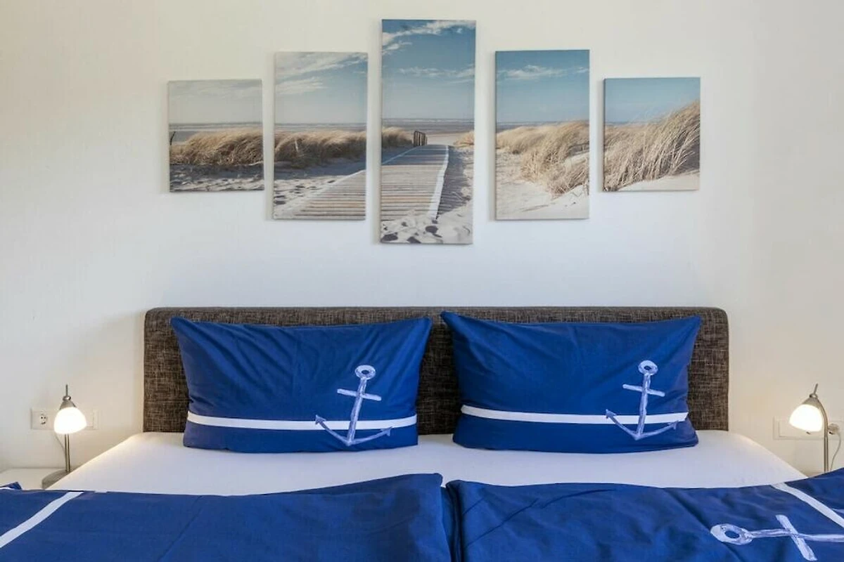 Nasz apartament wakacyjny „Kniepsand” to lewy, zewnętrzny apartament w budynku „Wind & Wellen”. Apartament składa się z jednej sypialni z łóżkiem kontynentalnym, telewizorem i dostępem do balkonu. Druga sypialnia wyposażona jest w dwa pojedyncze łóżka. Do dyspozycji Gości jest łazienka z prysznicem i wanną. Dodatkowa toaleta dla gości znajduje się na parterze. Kuchnia jest w pełni wyposażona we wszystko, czego potrzebujesz na wakacjach: piekarnik, kuchenkę mikrofalową, zmywarkę, lodówkę z zamrażalnikiem, sodę gazową itp. W salonie znajduje się przytulny duński piec opalany drewnem, duży telewizor LCD, odtwarzacz Blu-ray DVD i system hi-fi Sony. Do dyspozycji Gości jest również bezpłatne Wi-Fi oraz dostęp do tarasu z meblami ogrodowymi, leżakiem plażowym i leżanką.