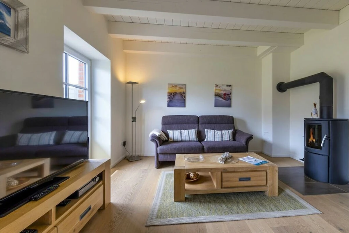 W salonie znajduje się przytulny duński piec opalany drewnem, duży telewizor LCD, odtwarzacz Blu-ray DVD, system hi-fi Sony oraz bezpłatne Wi-Fi.