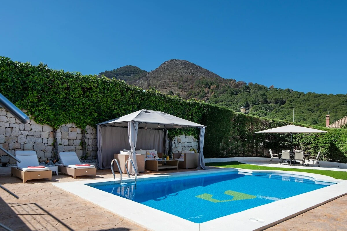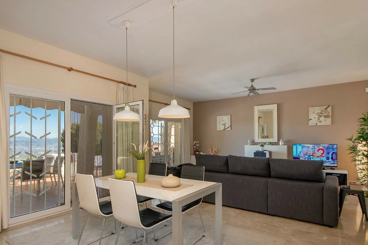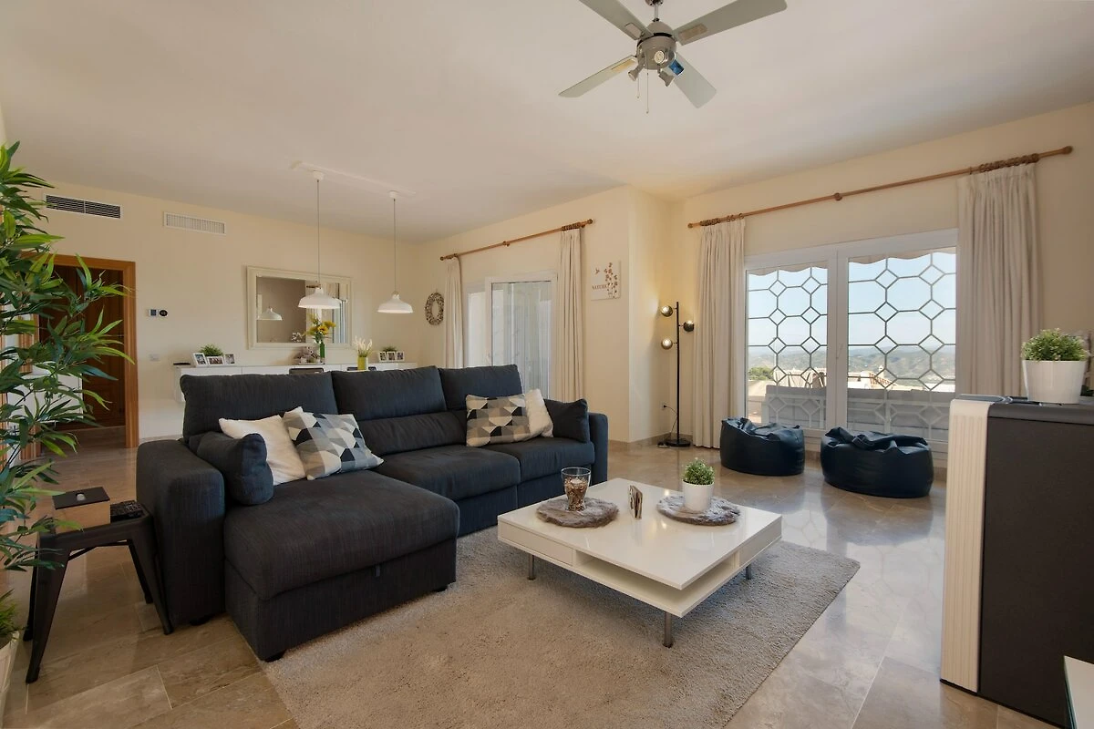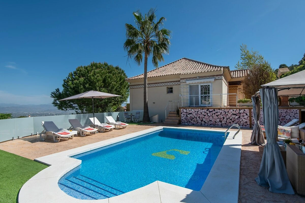 Eleganckie i stylowe wnętrze tej 4-pokojowej willi w Pinos de Alhaurín gwarantuje luksusowe wakacje. Jest idealna dla rodzin lub grup do ośmiu osób.
