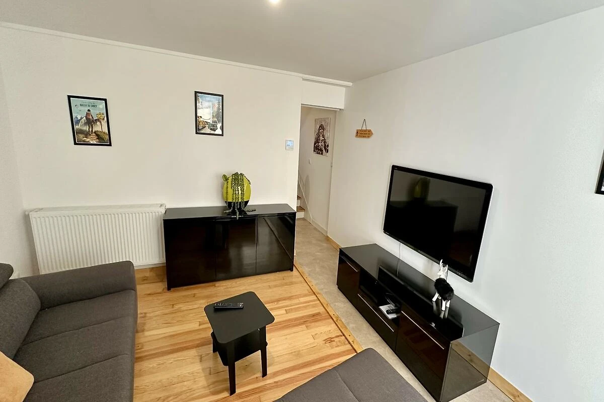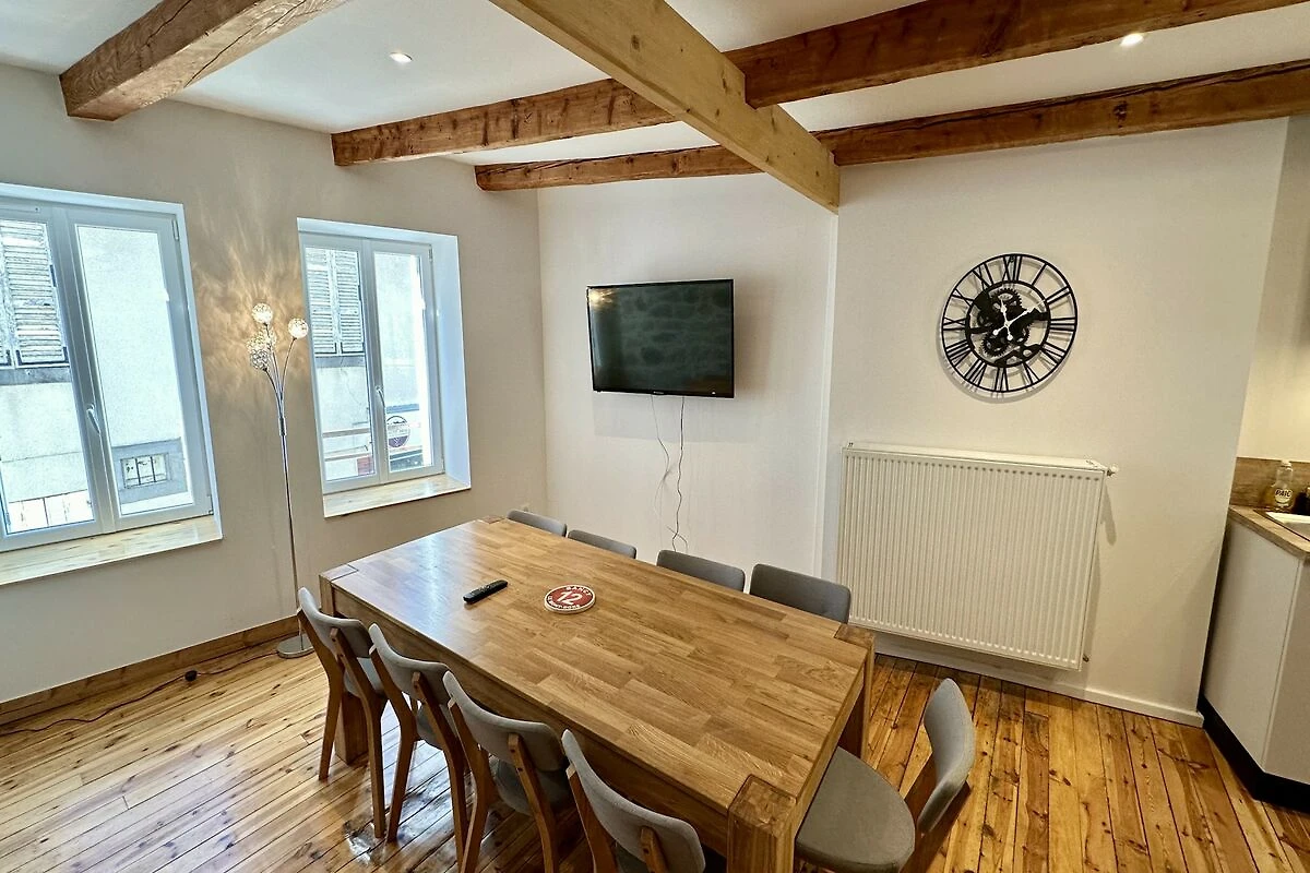 Urokiem domu jest ogromny, 60-metrowy taras, z którego roztacza się niczym niezakłócony widok na góry Sancy. Wyposażony w grill i liczne meble ogrodowe, jest idealnym miejscem na słoneczne śniadania lub świąteczne kolacje. Nowoczesna kuchnia w stylu amerykańskim z płytą indukcyjną i zmywarką sprawia, że gotowanie dla dużej grupy osób jest bezproblemowe. Nowoczesne udogodnienia, takie jak szybkie Wi-Fi, dwa telewizory, pralka i suszarka bębnowa, są w pełni dostępne, zapewniając praktyczny i bezstresowy pobyt.