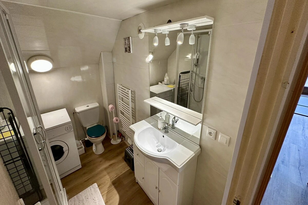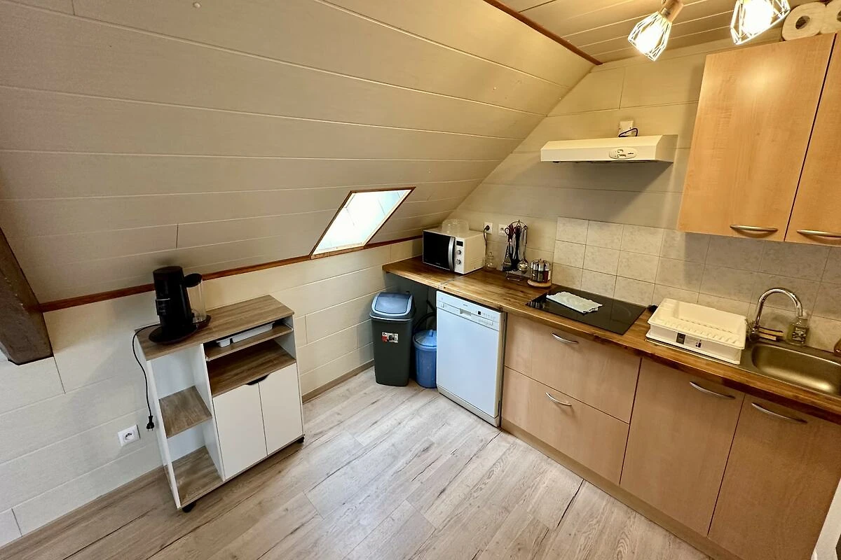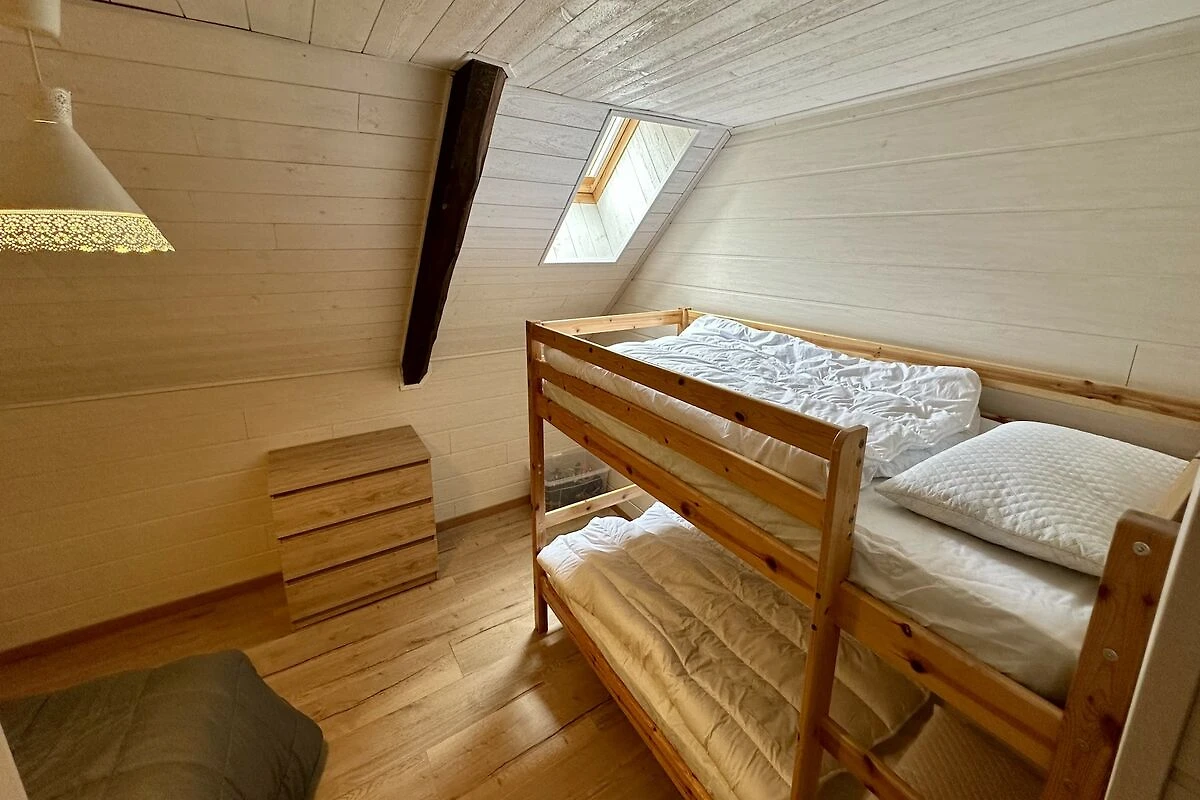 Apartament oferuje przestronny układ z trzema sypialniami, zapewniając mnóstwo przestrzeni, dzięki czemu każdy może się zrelaksować bez uczucia tłoku. Miejsca do spania obejmują trzy łóżka podwójne i łóżko piętrowe, co czyni go idealnym wyborem dla dużych rodzin lub grup przyjaciół. Sercem domu jest wspólna kuchnia w stylu amerykańskim, w pełni wyposażona w płytę ceramiczną, piekarnik i zmywarkę – idealną do przygotowywania posiłków dla dużej rodziny, tak jak w domu. Aby Twój pobyt był jeszcze bardziej praktyczny, w apartamencie znajduje się pralka i suszarka bębnowa, dzięki czemu z łatwością uporasz się z praniem po dniu pełnym przygód na świeżym powietrzu.