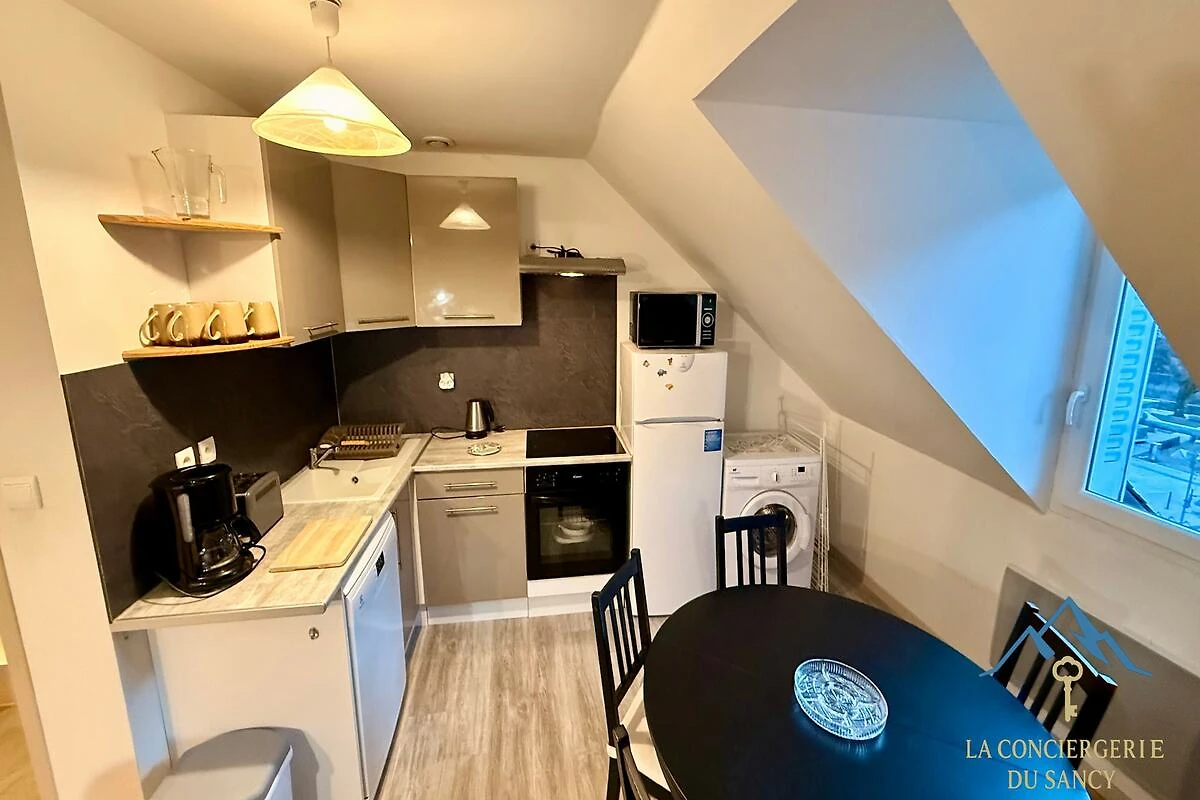 Strategicznie położony apartament, idealny na każdą porę roku, znajduje się zaledwie 4 km od ośrodka narciarskiego Sancy i tylko 3 km od lokalnego pola golfowego.