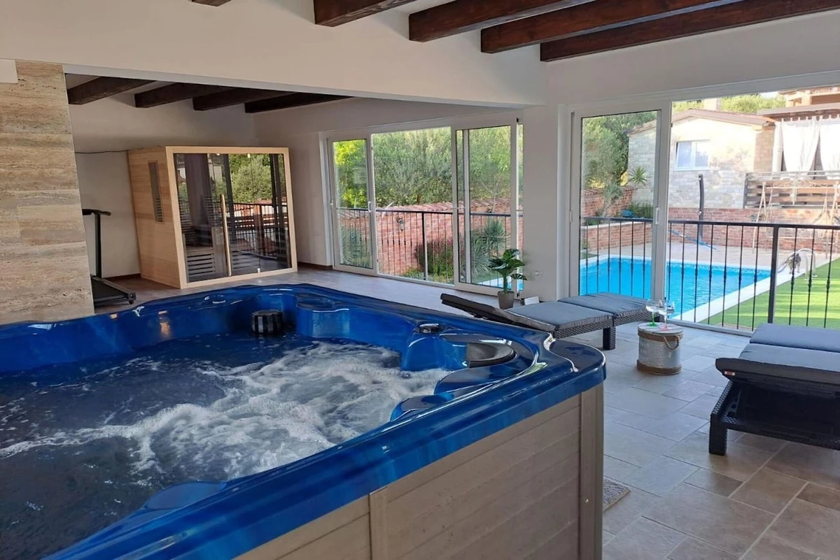The willa w Polaca ma 3 sypialnie i obłożenie dla 8 osób. Nocleg od 120 m² zalotny i całkowicie wyposażone, Z widokiem na ogród i na basen. Znajduje się w pobliżu 100 m from coffee shop, 5 km supermarkecie, 10 km plaży skalistej, 10 km do restauracji, 13 km from hospital, 13 km miasta, 25 km lotniska, 25 km lotniska i Znajduje się w idealnej dla rodzin strefa. Zakwaterowanie jest wyposażone w następujące rzeczy ogród, meble ogrodowe, ogrodzona działka, taras, pralka, suszarka, grill, żelazko, internet (wifi), suszarka do włosów, siłownia, spa, ogrzewanie elektryczne, klimatyzacja w całym domu, basen prywatny, parking na otwartej przestrzeni w przy budynku, Telewizor, antena satelitarna. The kuchnia otwarta, plyta elektryczna, jest wyposażone w chłodziarka, mikrofalówka, piekarnik, zamrażarka, zmywarka, naczynia/sztućce, przybory kuchenne i ekspres do kawy.