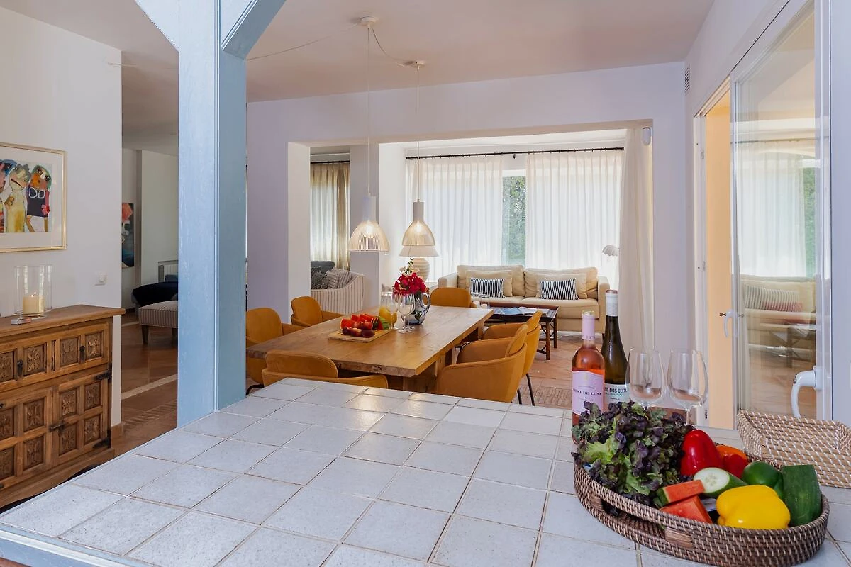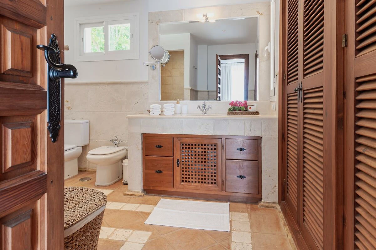 Witamy w tej urokliwej willi w stylu andaluzyjskim, położonej w pięknej dzielnicy Los Monteros. Zaledwie kilka minut od czystej plaży i znanego kurortu La Cabane Beach Resort, ta willa oferuje idealną mieszankę luksusu i wygody. Jej doskonała lokalizacja znajduje się bardzo blisko centrum Marbelli, lokalnego szpitala, supermarketu i klubu tenisowego Los Monteros Racket Club, gdzie można cieszyć się grą w tenisa lub padla. Wchodząc przez zachwycające stare drewniane drzwi, witają Cię schody po prawej stronie, prowadzące na pierwsze piętro, gdzie znajdują się cztery pięknie urządzone sypialnie. Sypialnia główna posiada łazienkę en-suite i duży balkon z wystarczającą ilością miejsc do siedzenia, idealny do relaksu i podziwiania widoków. Jest również pokój dziecięcy z dwoma pojedynczymi łóżkami, obok pokoju z pojedynczym łóżkiem; te dwa dzielą łazienkę. Dodatkowo znajduje się jeszcze jedna sypialnia z podwójnym łóżkiem i łazienką en-suite. Na parterze, po prawej stronie schodów, znajduje się jedyna sypialnia na parterze, która posiada podwójne łóżko, łazienkę en-suite i bezpośredni dostęp do tarasu i ogrodu. Parter obejmuje również przestronny salon z dwiema sofami i dużym telewizorem plazmowym, idealny do wypoczynku i rozrywki. Obok salonu znajduje się jadalnia i piękna, w pełni wyposażona niebieska kuchnia, idealna do przygotowywania i spożywania posiłków z rodziną i przyjaciółmi. Z jadalni można wyjść bezpośrednio na zadaszoną werandę, która oferuje przytulną sofę do relaksu i stół do jadalni z grillem do posiłków na świeżym powietrzu. Rozległy ogród obejmuje duży basen z trzema leżakami, oferujący miejsce dla czterech osób, a także sofę ogrodową i dwa mniejsze worki do siedzenia. Ta willa w Los Monteros to kwintesencja andaluzyjskiego uroku, oferująca komfort, elegancję i niezrównaną lokalizację.