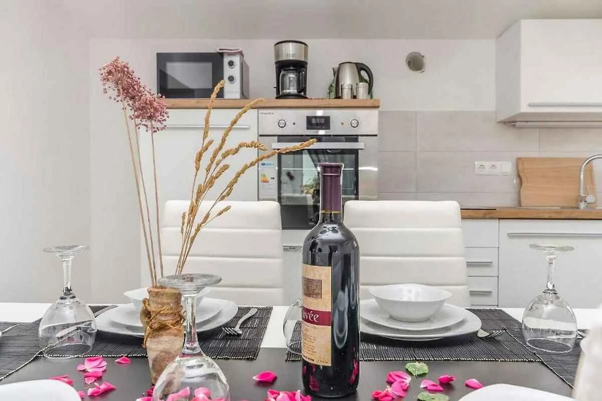 Mieszkanie wakacyjne znajduje się w apartamentowcu i jest nowocześnie i funkcjonalnie urządzone. Posesja położona w dzielnicy mieszkalnej, w centrum miasta. Zakwaterowanie jest popularne również ze względu na słoneczne położenie. Do użytku dostępne są: sprzęt do grillowania i meble ogrodowe.
