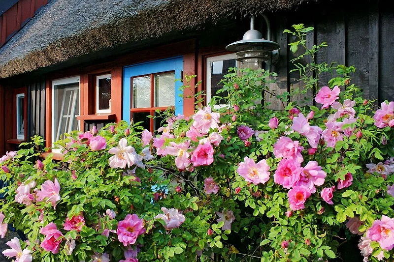 Ukryty za kwitnącymi różami i krzewami, nasz mały domek znajduje się w spokojnej miejscowości Born nad Darß, około 150 metrów od zatoki. Born jest idyllicznie położony nad wodą pomiędzy zatoką, Bałtykiem i lasem. Wiele małych, krytych strzechą domów marynarzy z ich kolorowymi, rzeźbionymi drzwiami wejściowymi i ozdobnymi deskami szczytowymi, ładne, zadbane ogrody frontowe nadają wiosce malowniczy wygląd