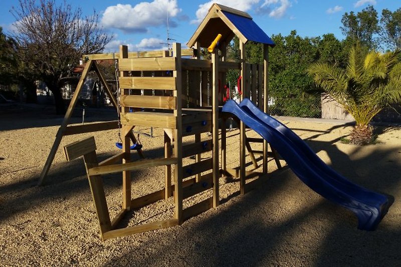 Specjalnie dla potrzeb dzieci dużo zostało zrobione: Dla najmłodszych mamy łóżeczko, krzesełko do karmienia oraz fotelik zakupiony dla samochodu. Dla większych dzieci znajduje się wieża zabaw ze zjeżdżalnią i huśtawką. Trampolinę o średnicy 3 metrów sprawia, że małe i świetną zabawę. Außerden są gry i zagadki, jak również koła, rolki i Bobycar dostępne.