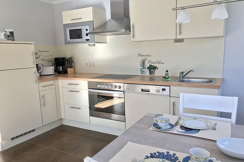 Sie ist in hellen, freundlichen Farben gehalten, die Ausstattung war komplett, uns fehlte es an nichts.