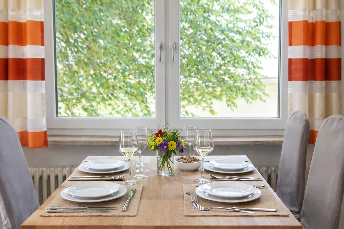 Mieszkanie znajduje się w spokojnej dzielnicy mieszkalnej z dobrymi połączeniami, zakupy są możliwe na piechotę.