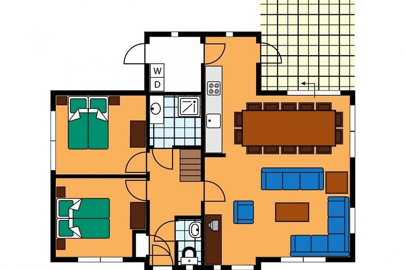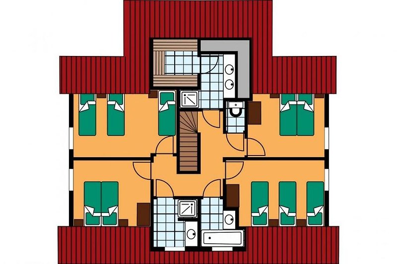 De indeling van het huis was top. Ook de ruime voorziening van badkamers is prima. Keukenmateriaal was ook ruim voldoende. Alleen zijn douchegordijnen niet zo hygiënisch t.o.v deuren. Voor een huis van 14 personen was de koelkast veel te klein, zeker op warme dagen. Ook de combi-oven laat niet toe om een ovenschotel te maken. De matrassen zijn niet gemaakt om een paar nachten achter mekaar op te slapen. Mogen dus best wat harder.